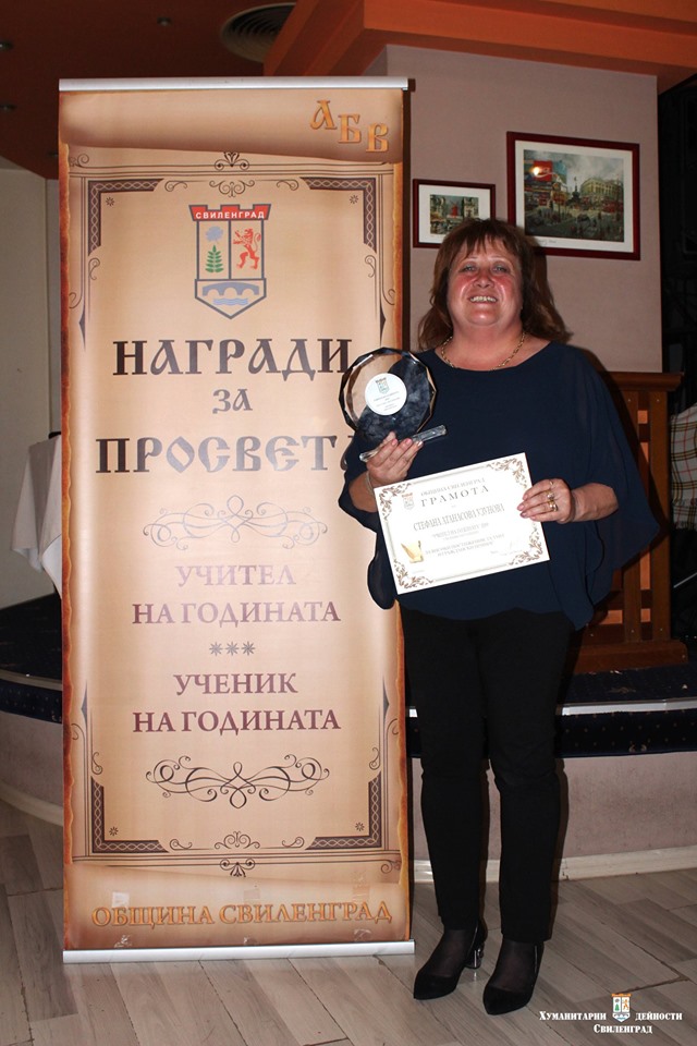 Тя спечели признанието в благородна надпревара с Евелина Къналиева от ОУ „Христо Ботев“ – с. Левка, Златка Станкова от СУ „Д-р П- Берон“, Маргарита Игнатова от ЦСОП „Стефан Василев“ и Мария Савова от IОУ „Иван Вазов“.