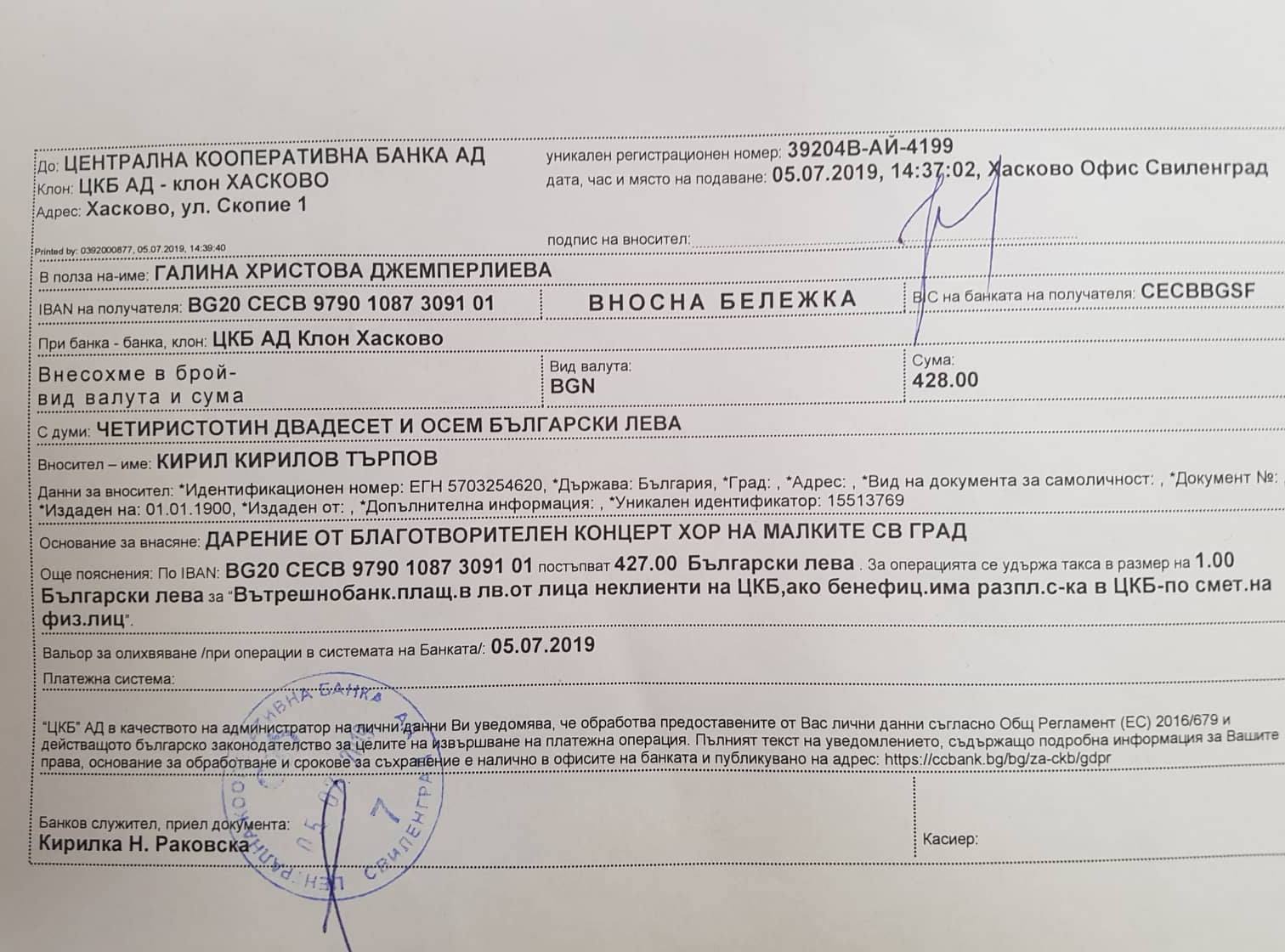 Ден след културната проява, събраната сума бе в сметката на Никол.