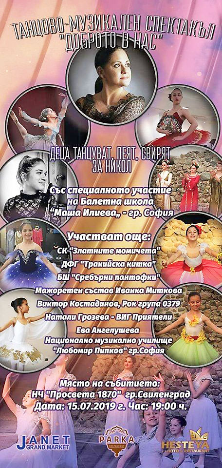 Бих била щастлива, ако с нашето идване в Свиленград успеем да помогнем на Никол. Вярвам в това! Много е хубаво, че в концерта участват и други състави. Така повече хора ще могат да са в помощ на Никол, каза часове преди концерта „Доброто в нас“ примата на българския балет Маша Илиева.