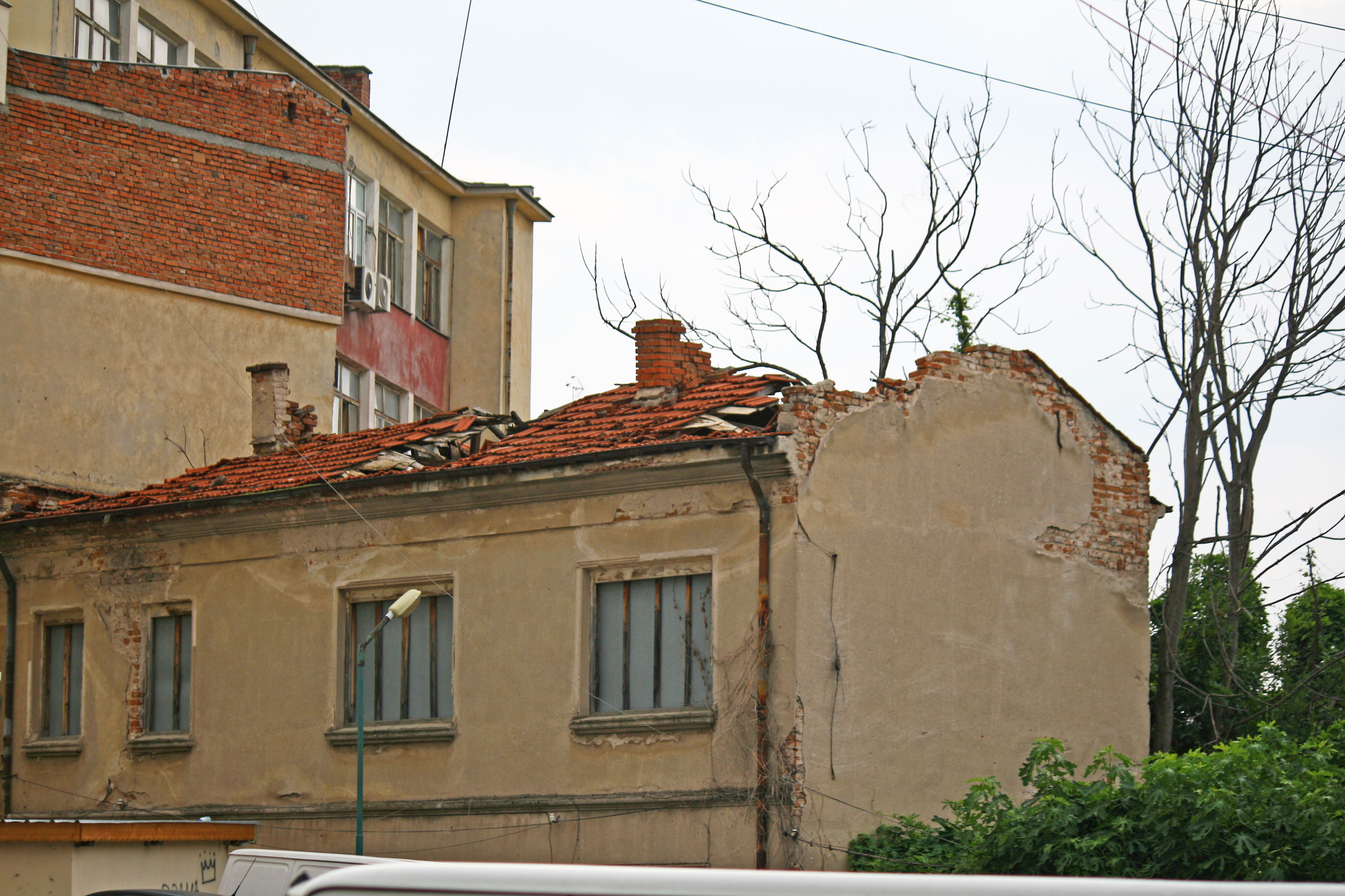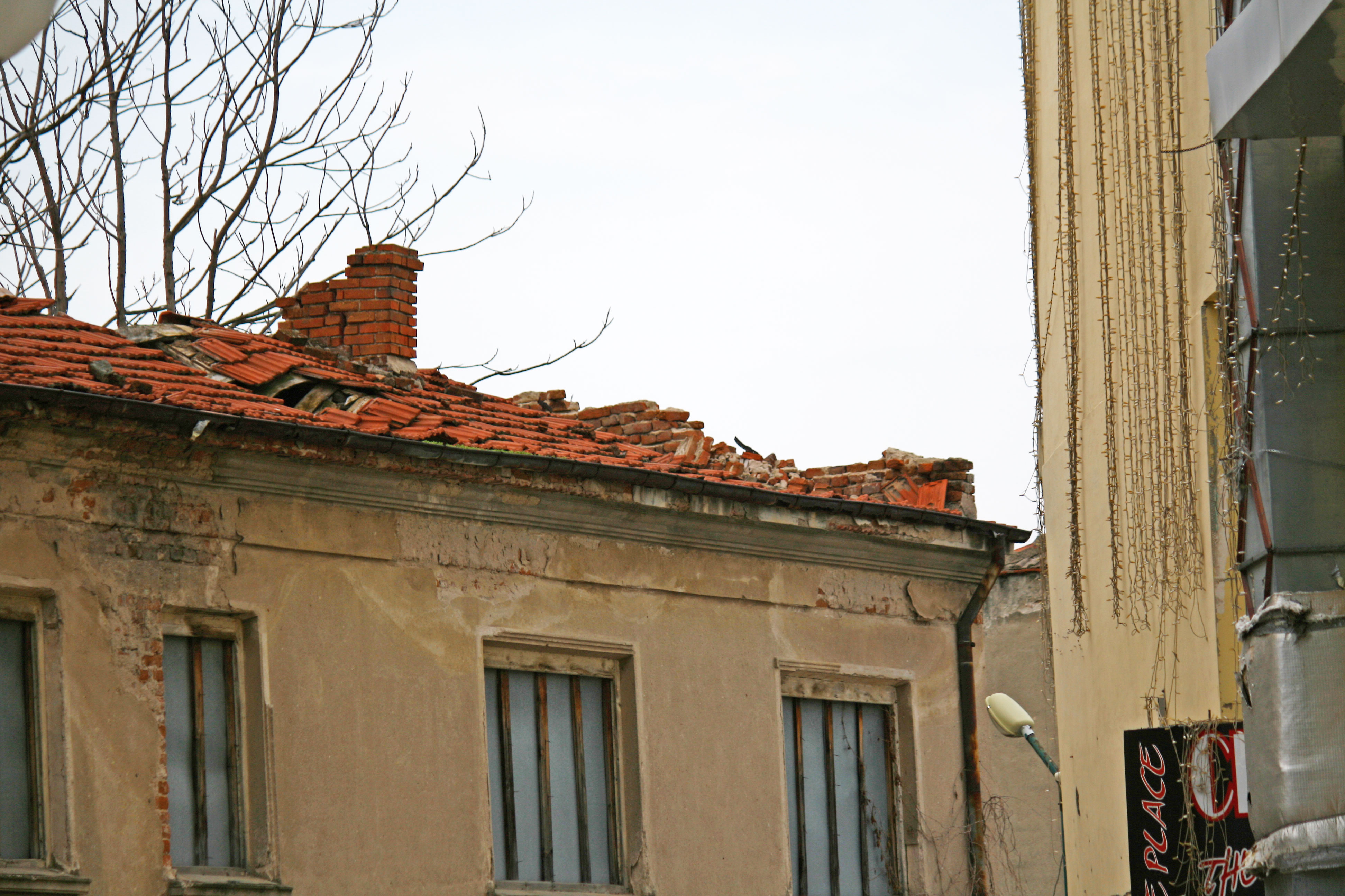Причината е в окаяното състояние на покривната конструкция на изоставената сграда на гърба на пощата. Според търговците често падат дребни парчета мазилка, въпрос на време е да падне нещо по-голямо, категорични са те.
