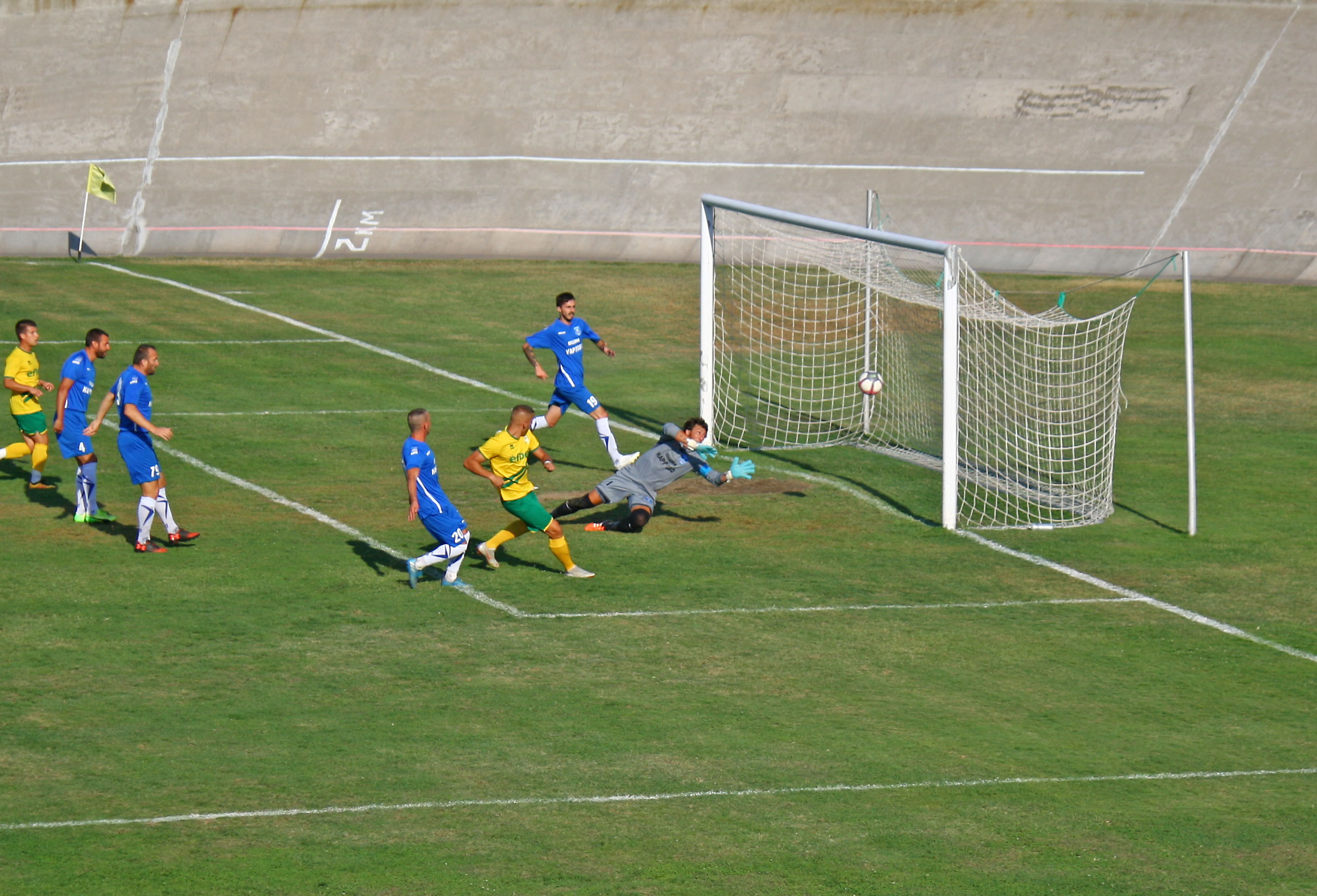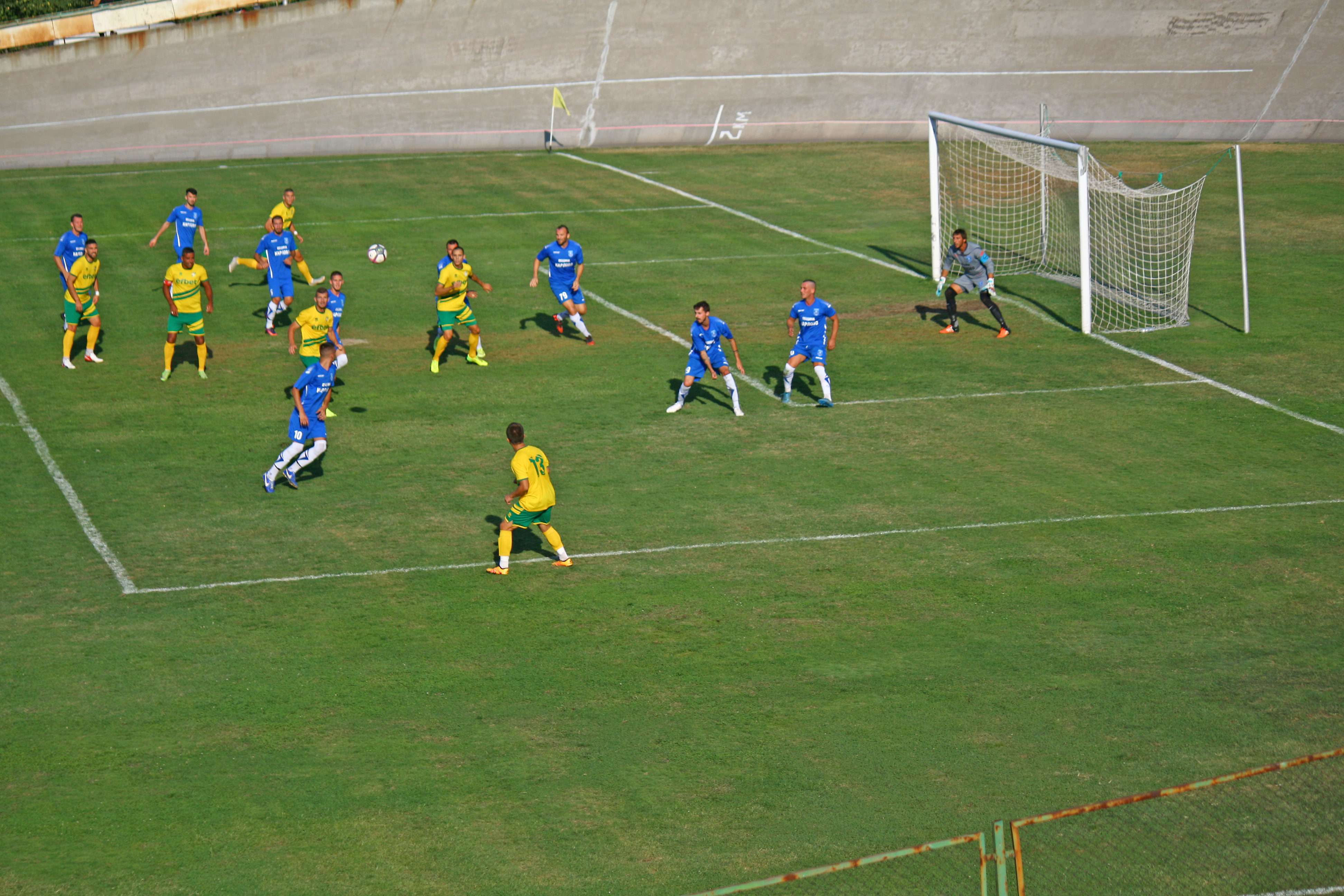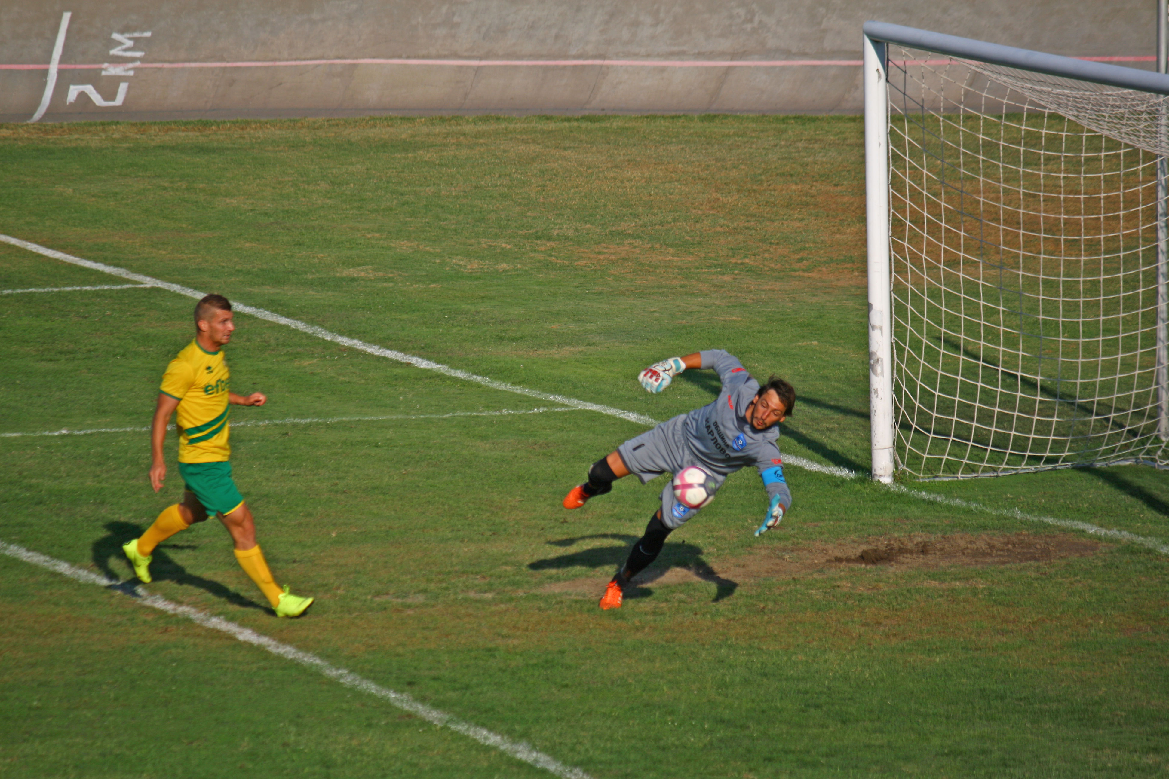 изоставане в резултата още в 5-ата минута. Тогава Петър Димитров опъна мрежата на „южняците“ с красив гол от пряк свободен удар, пращайки топката „при паяците“.