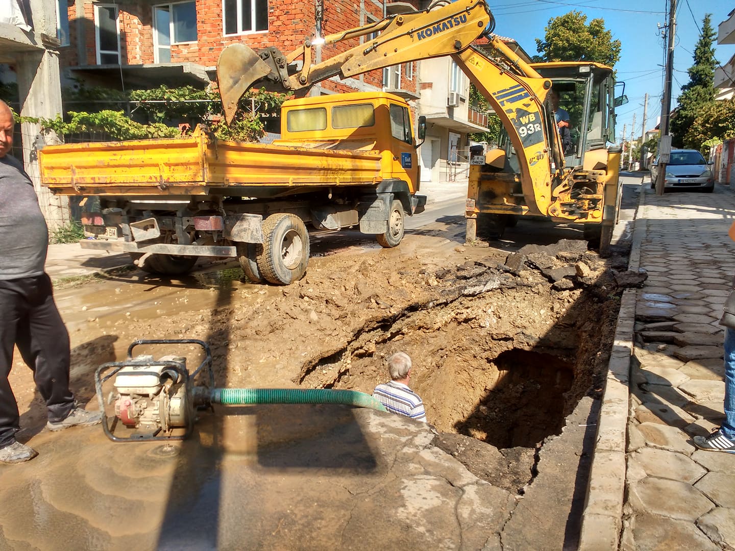 Тежка авария блокира движението по ул. „Д-р Страшимир Дочков“. Стара итернитова тръба от водопроводната мрежа се е спукала рано тази сутрин. От ВиК правят всичко възможно да отстранят по-скоро аварията. Включили са максимален брой техника и работна ръка.