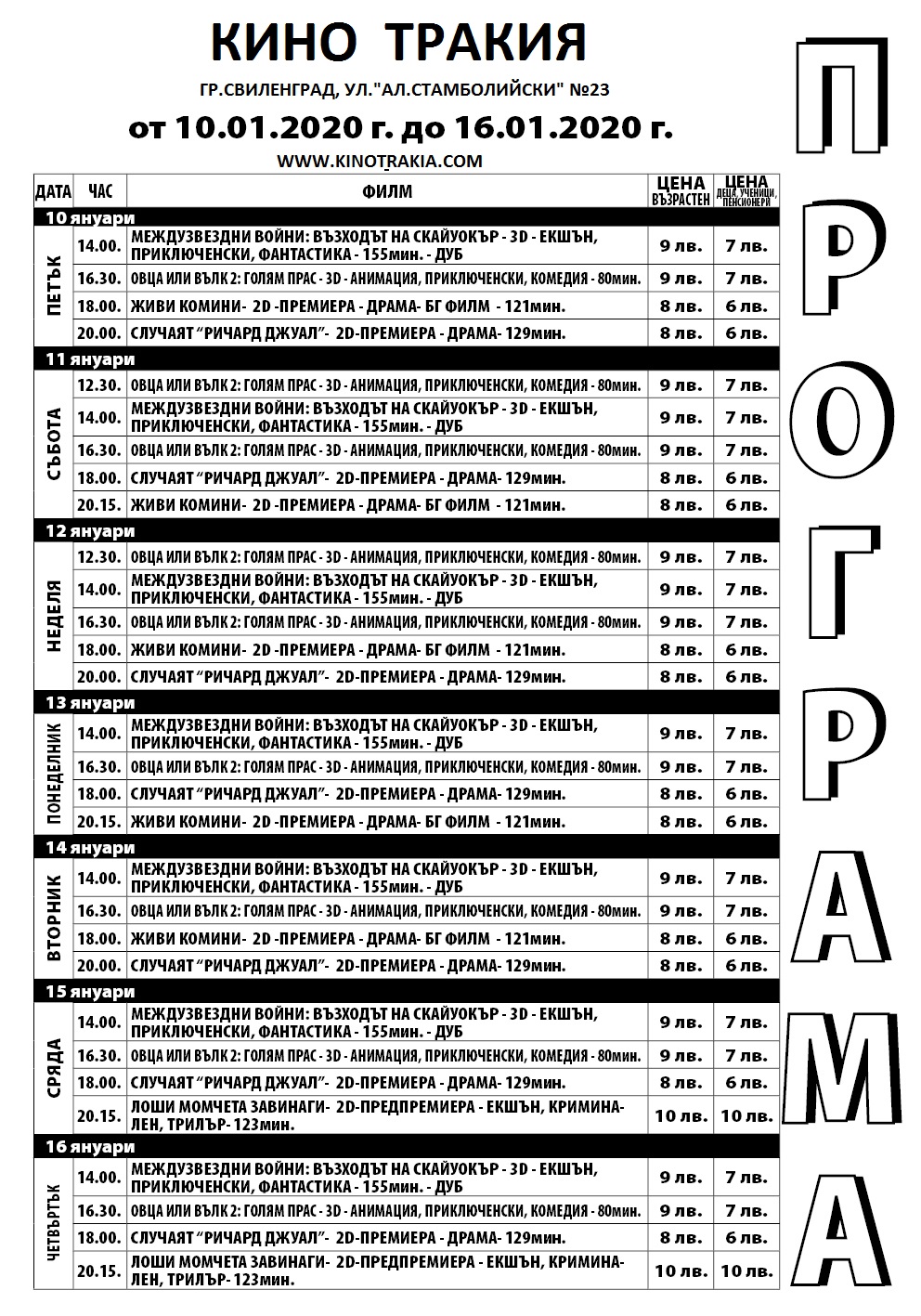 „Междузвездни войни“ – най-вълнуващата фантастична поредица в историята на киното, белязала живота на няколко поколения зрители и кинотворци, достига своя връх с „Междузвездни войни: Възходът на Скайуокър“, който от утре е на екран в свиленградското кино „Тракия“. Рей и Кайло Рен, джедаите и ситите, светлата и тъмната страна, доброто и злото се изправят във финален сблъсък, чиято кулминация ще роди нови легенди, които ще живеят вечно из необозримите простори на далечната галактика. Кулминация, която слага край на емблематичната история на Скайуокър.
