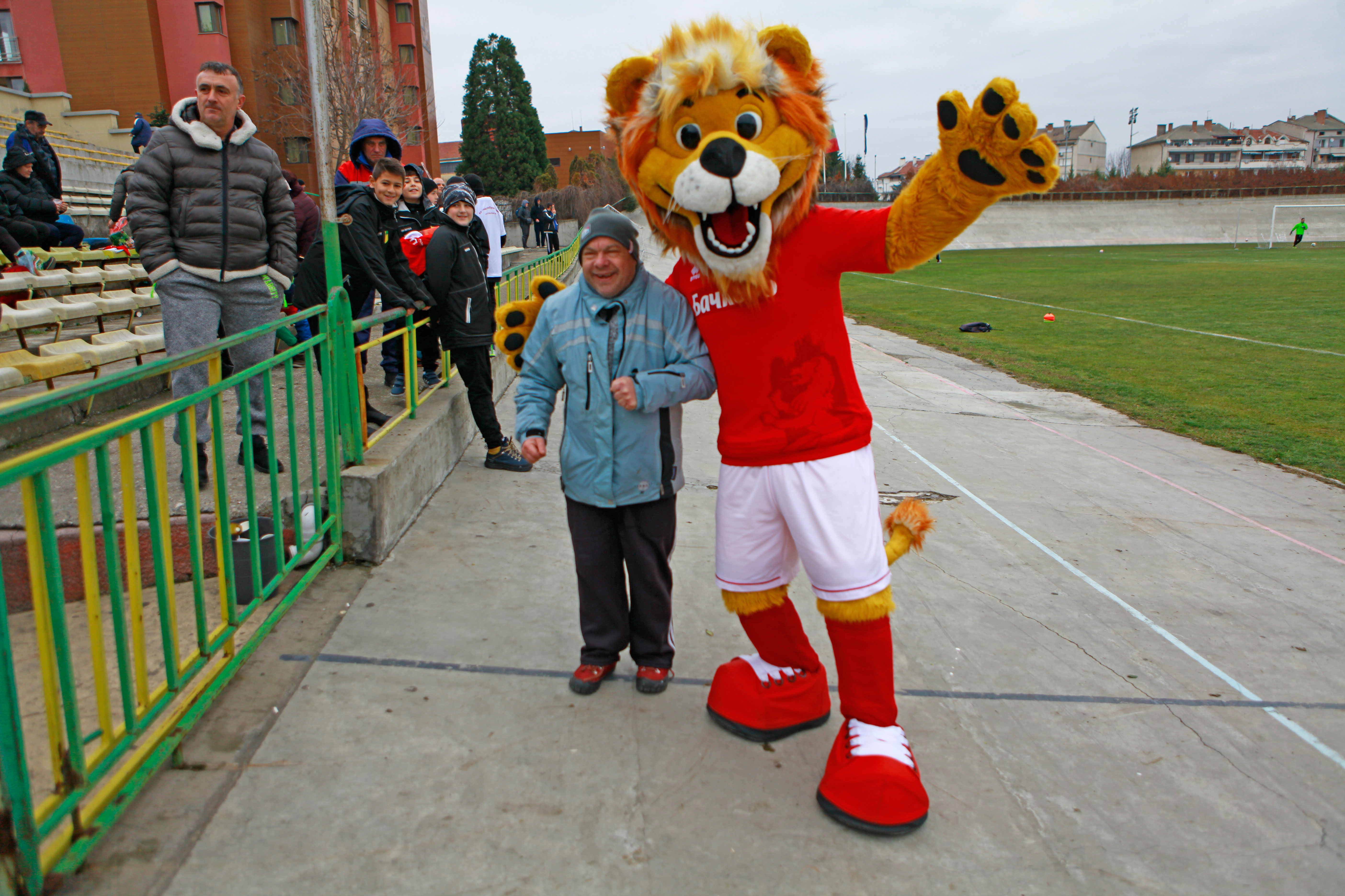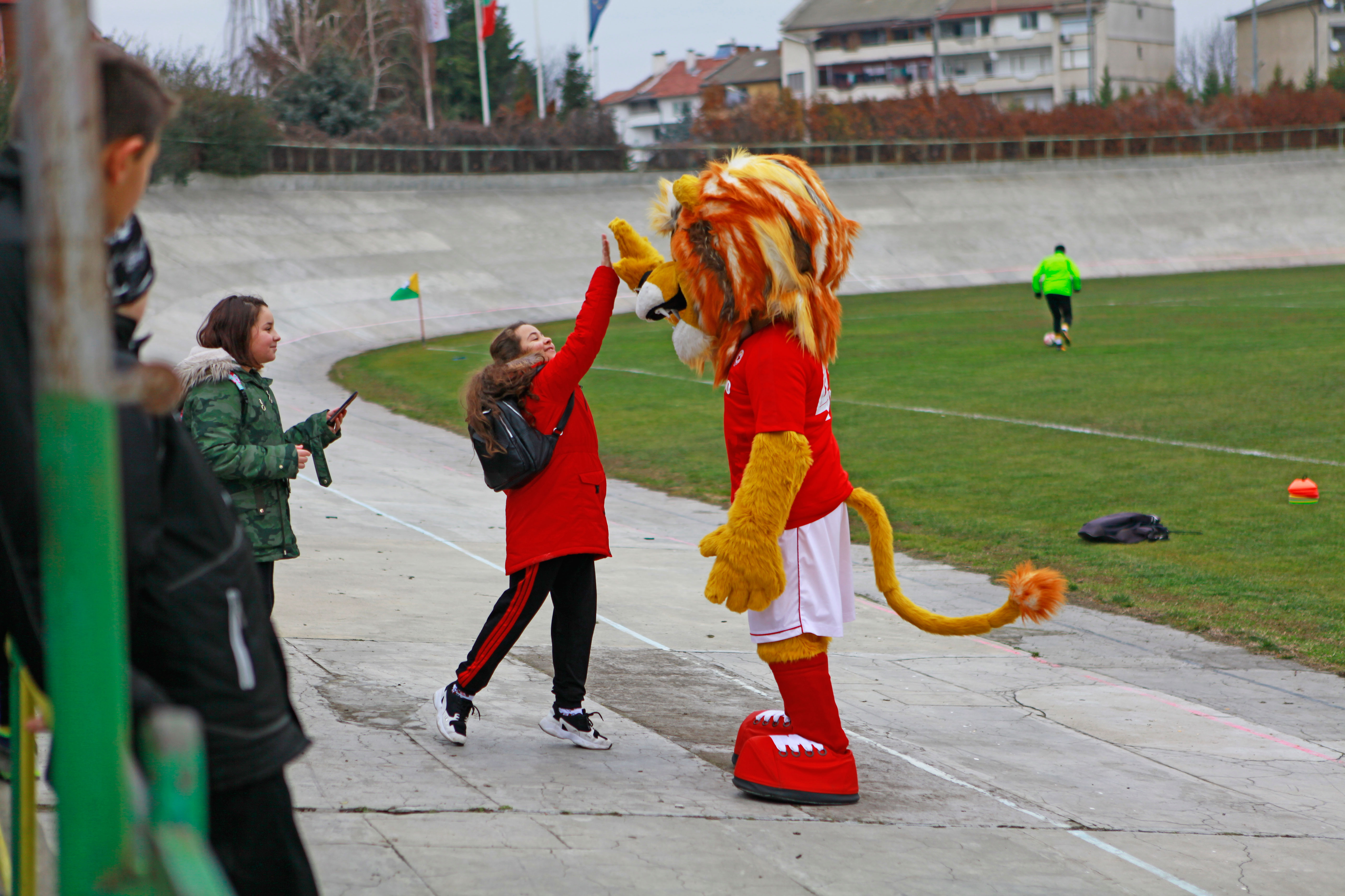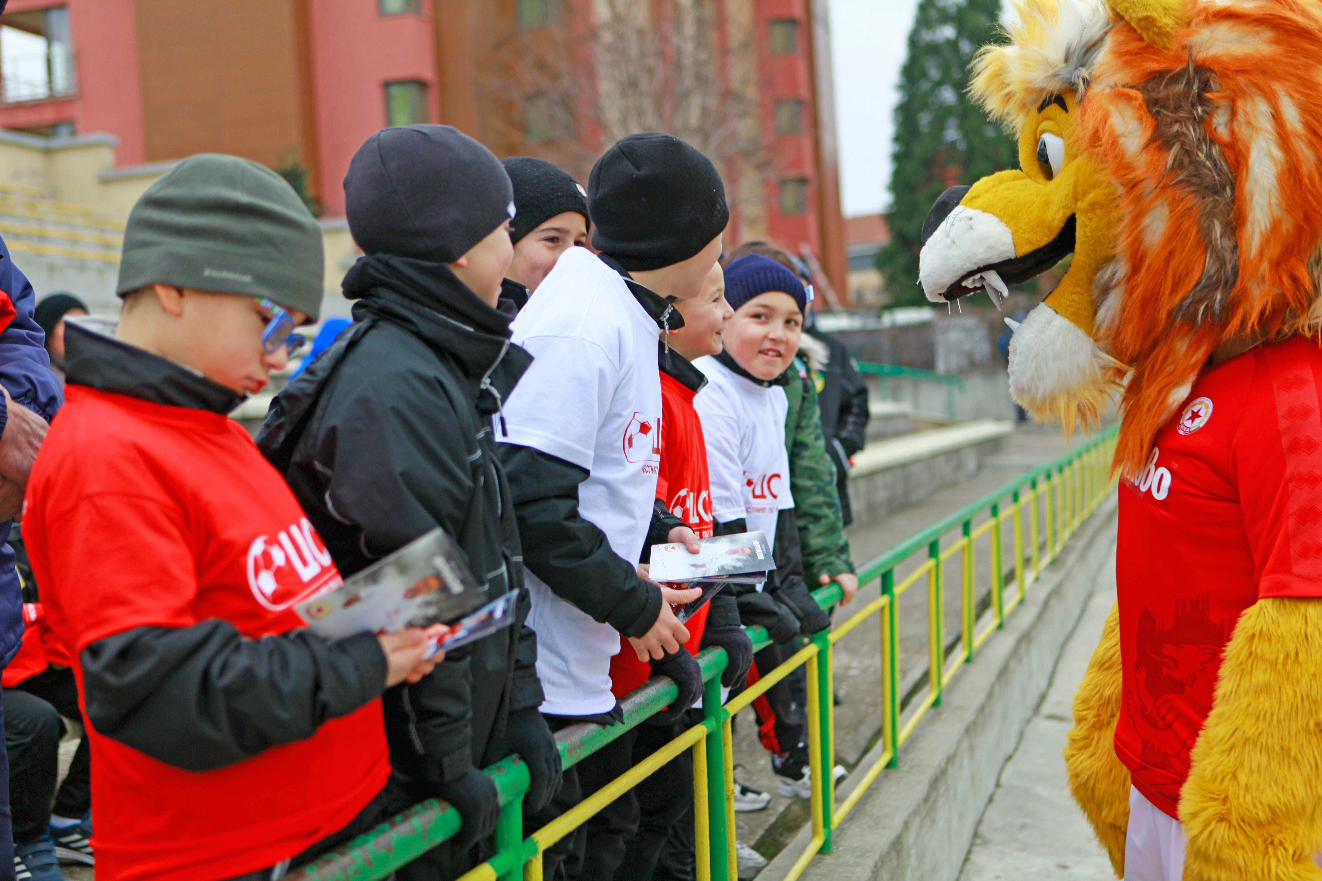 Гостите се погрижиха да заразват децата на стадиона. За тяхното настроение се погрижи лъвчето Арми, което им раздаде фланелки и ги забавляваше до започването на срещата.