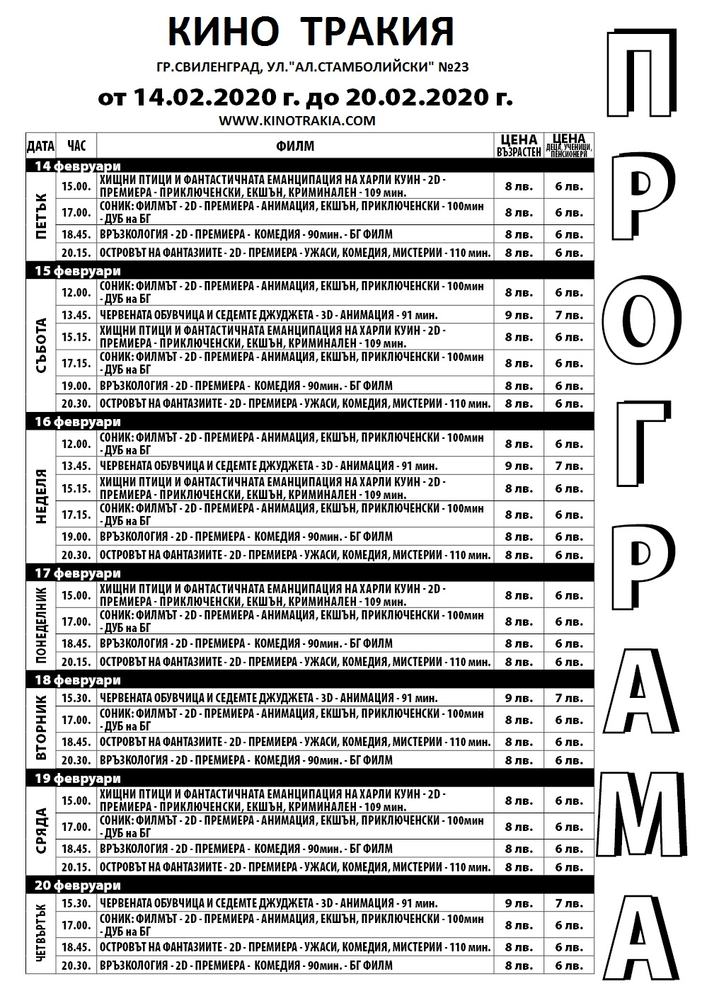 Ето и цялата филмова програма за седмицата на кино „Тракия“ – Свиленград:
