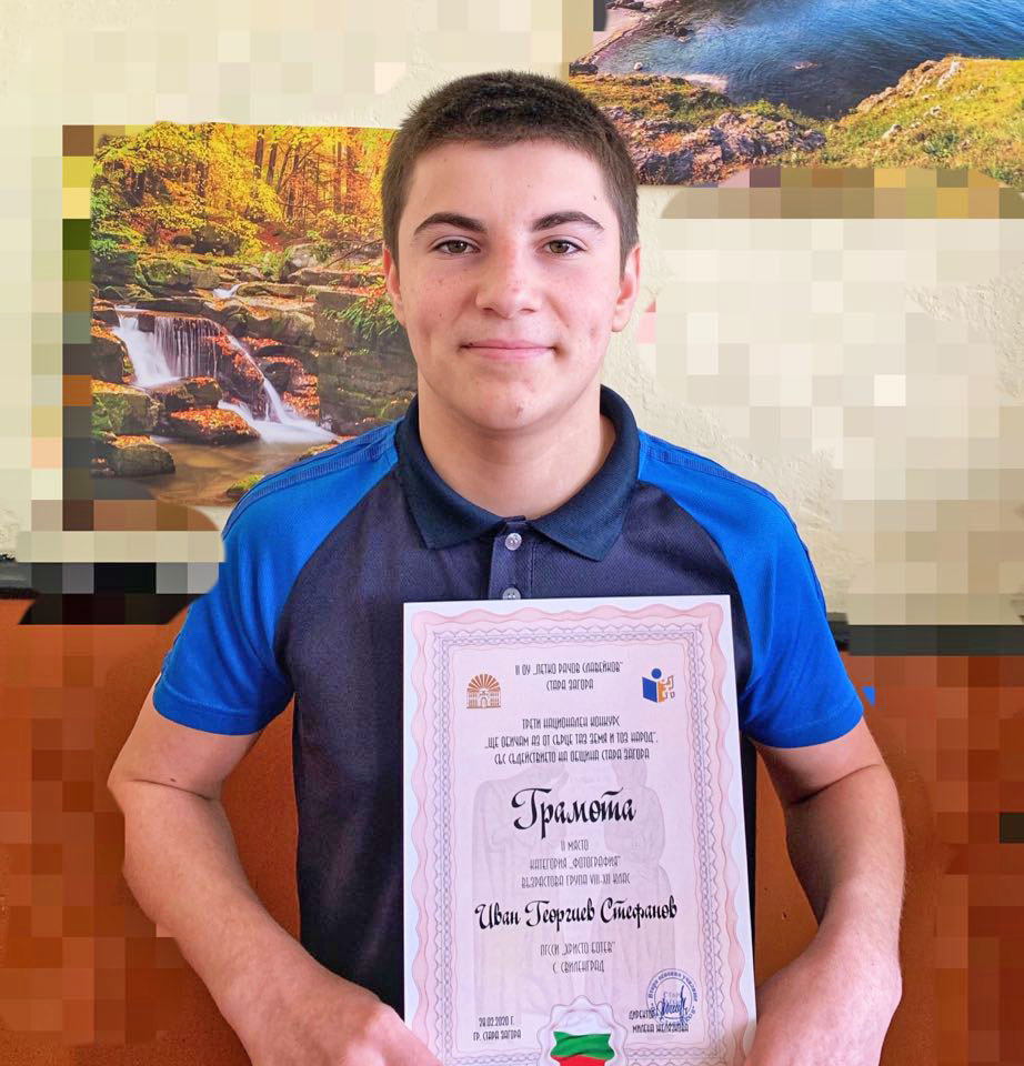 Осмокласникът Иван Стефанов зае второ място в категория „Фотография“ на III Национален конкурс „Ще обичам аз от сърце таз земя и тоз народ!“, който се проведе в Стара Загора.