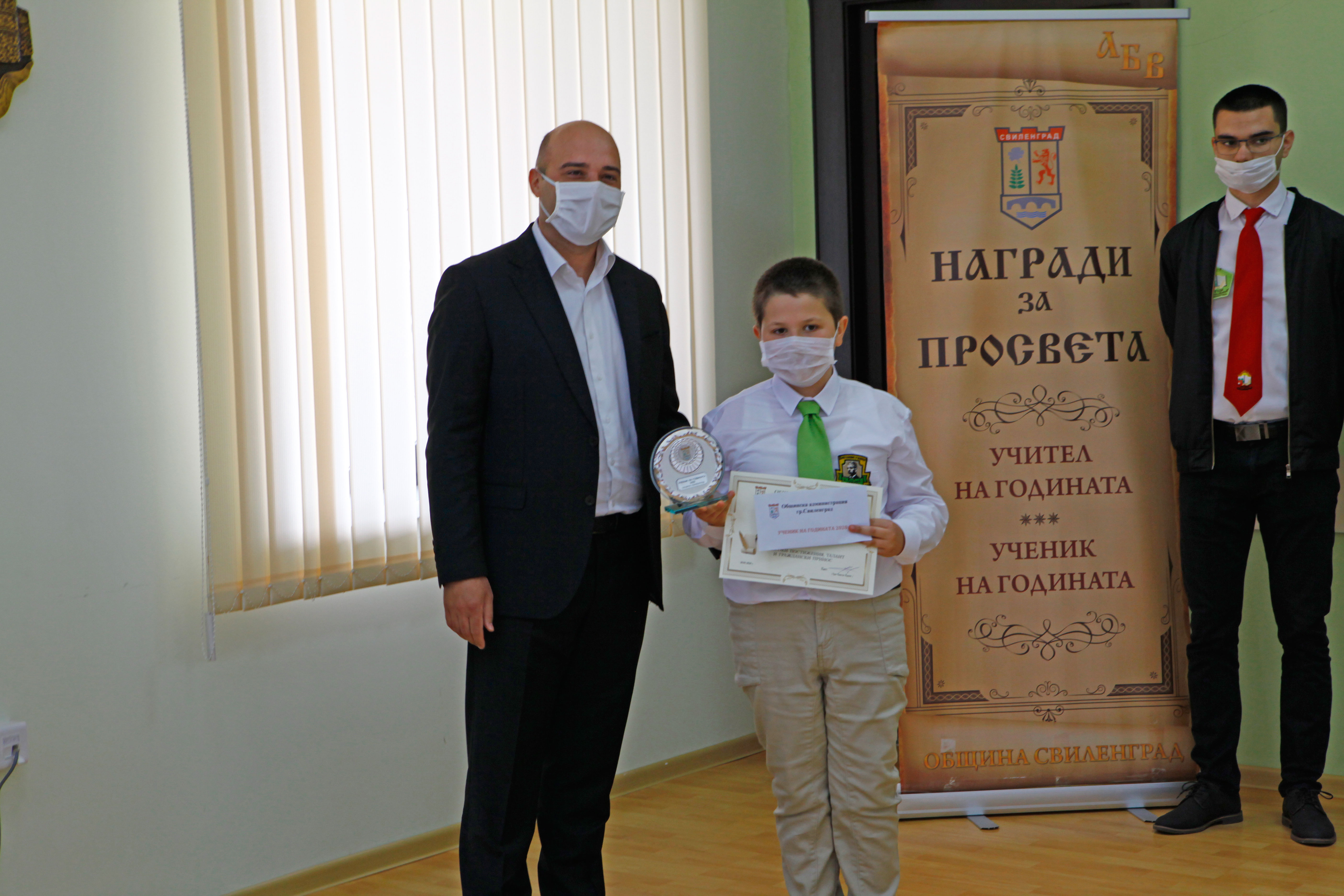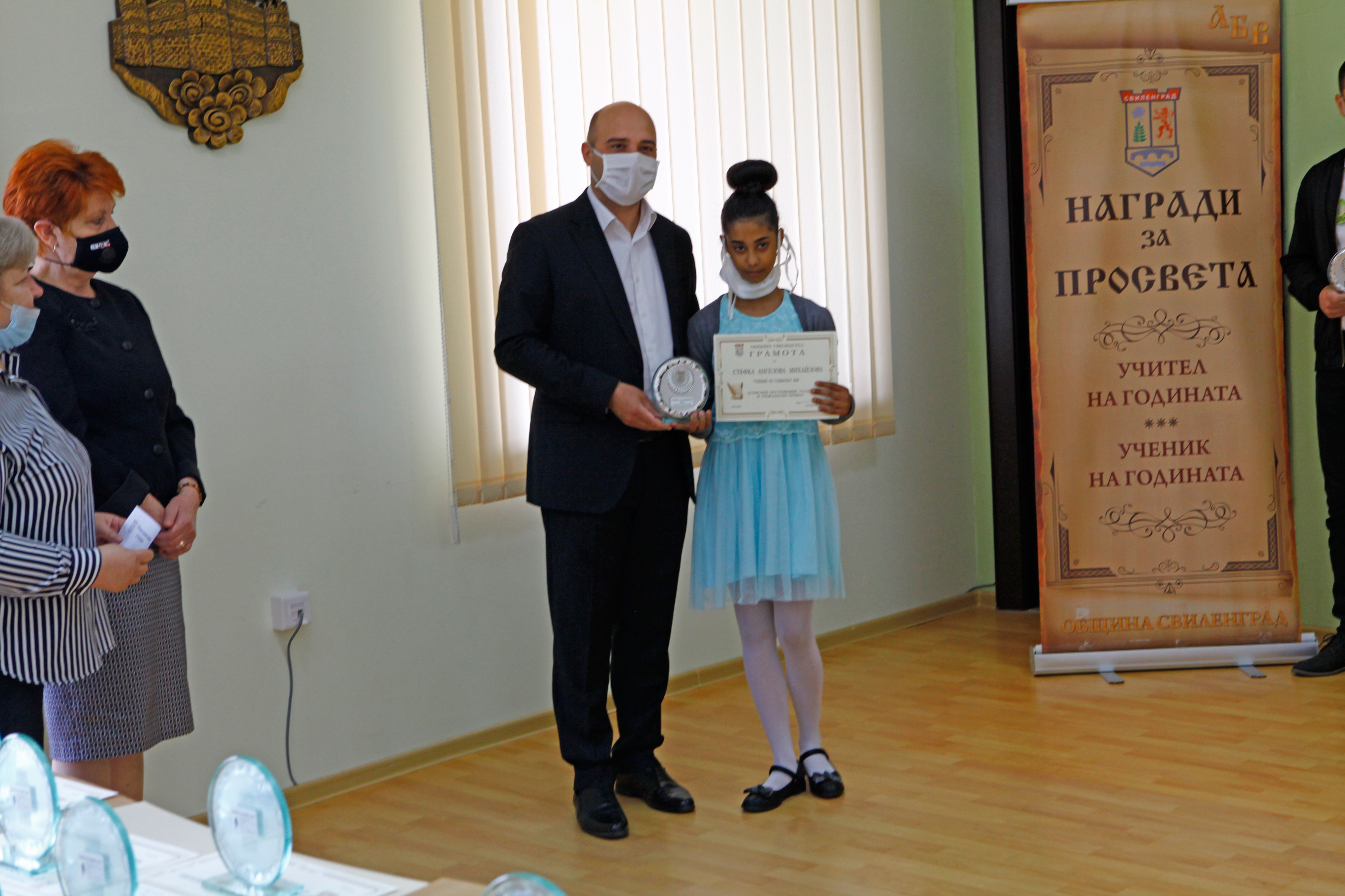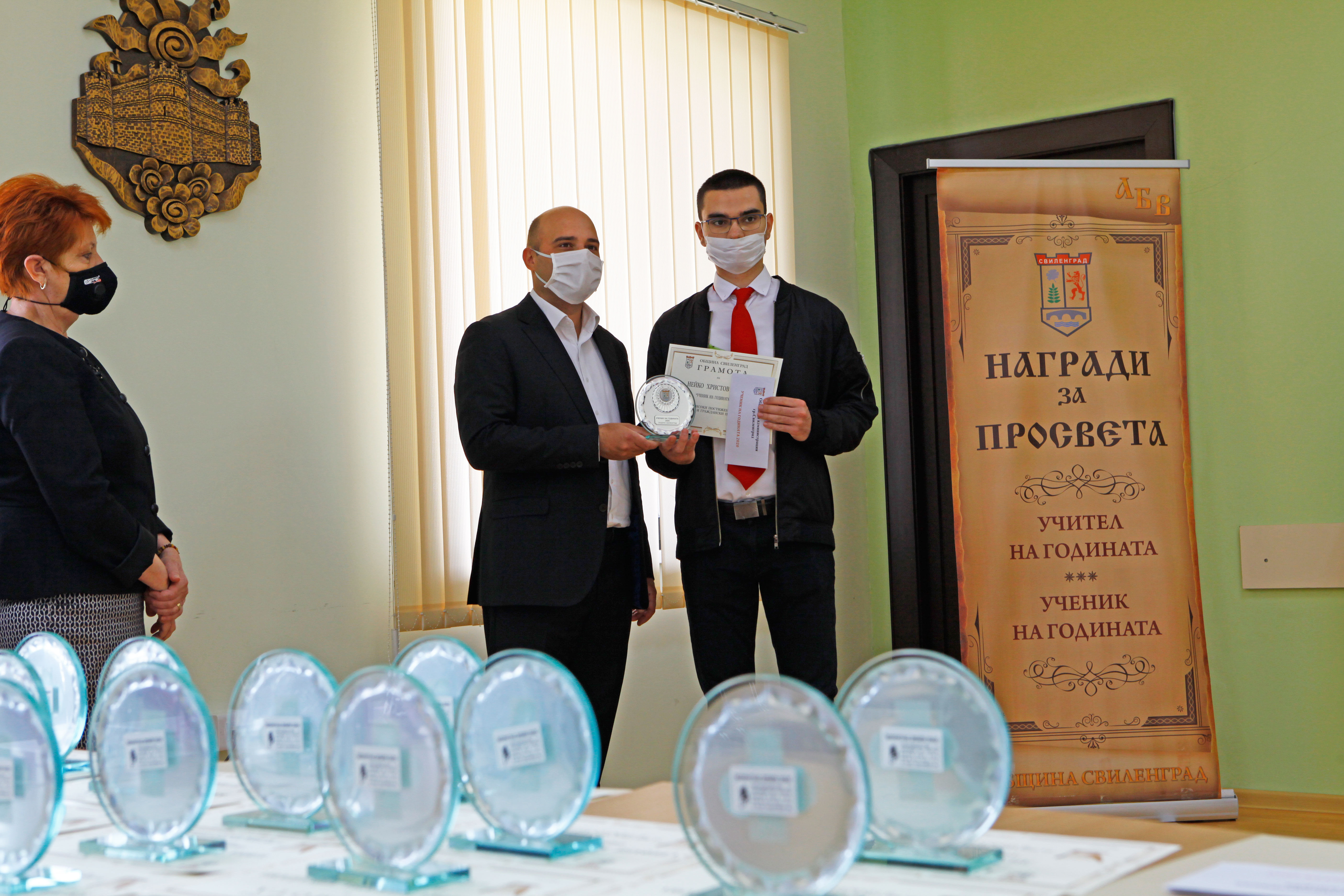 Днес, на скромна церемония, в малката заседателна зала на ОбА-Свиленград бяха връчени традиционните награди „Ученик на годината“ и „Учител на годината“. Връчването, по традиция, бе в навечерието на 24 май – Ден на българската просвета и култура и на славянската писменост. То се състоя при стриктно спазване на мерките срещу разпространението на коронавирус. Кметът на община Свиленград арх. Анастас Карчев и неговият заместник г-жа Мария Костадинова приеха номинираните от педагогическите съвети на учебните заведения по групи. Първи бяха учениците: Стефани Костадинова Караначева – СУ „Д-р Петър Берон“, Нейко Христов Нейков – ПГССИ „Христо Ботев“, Дениз Юлиянов Илиев – Първо ОУ „Иван Вазов“, Зина Михайлова Кирилова – ОУ „Любен Каравелов“, Мирослава Миткова Иванова – ОУ „Христо Ботев“, с. Левка, Стефка Ангелова Михайлова – НУ „Христо Попмарков“ и Дилян Динев Делчев – ЦСОП „Стефан Василев“. Всички те получиха красиви плакети, грамоти и парична награда.