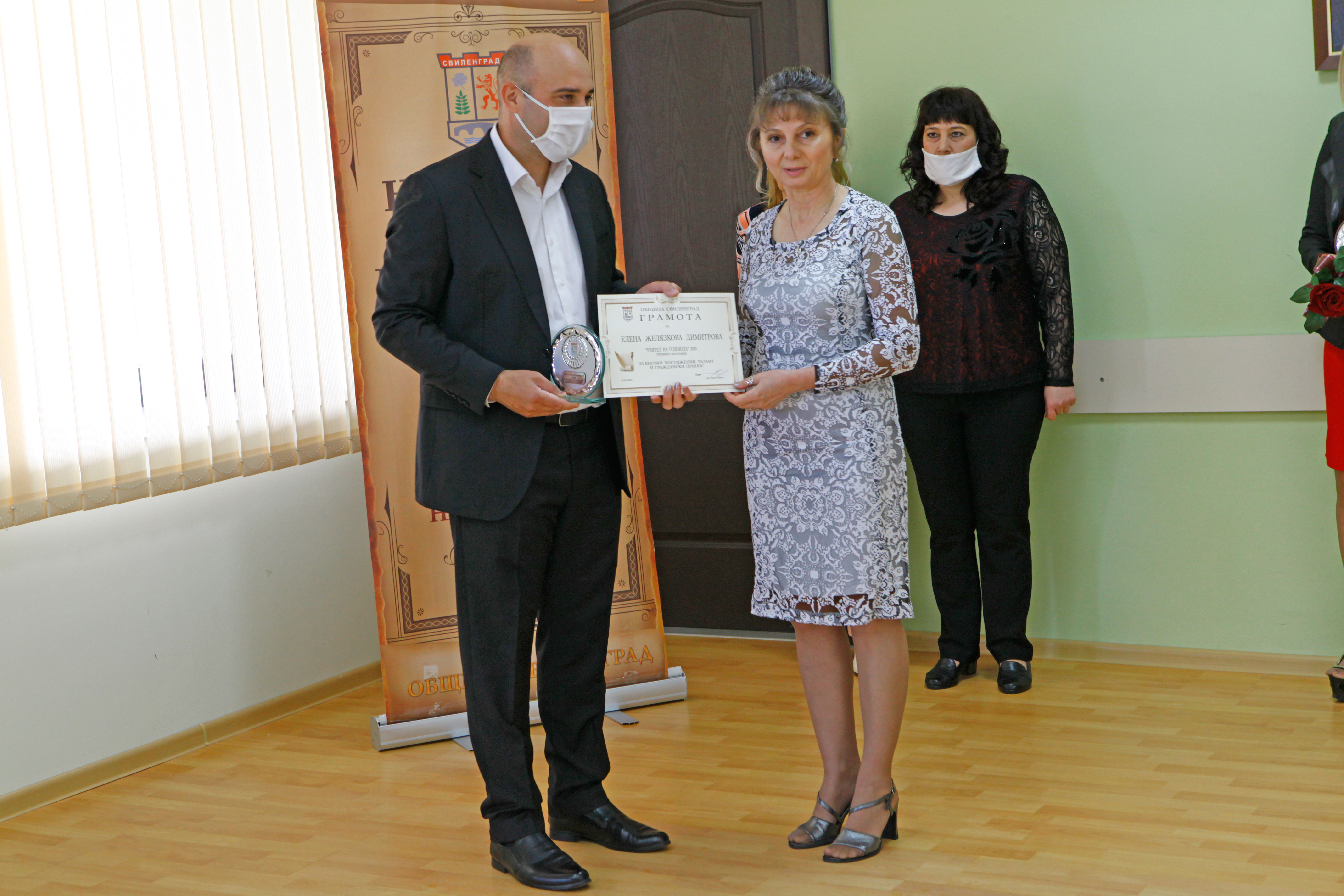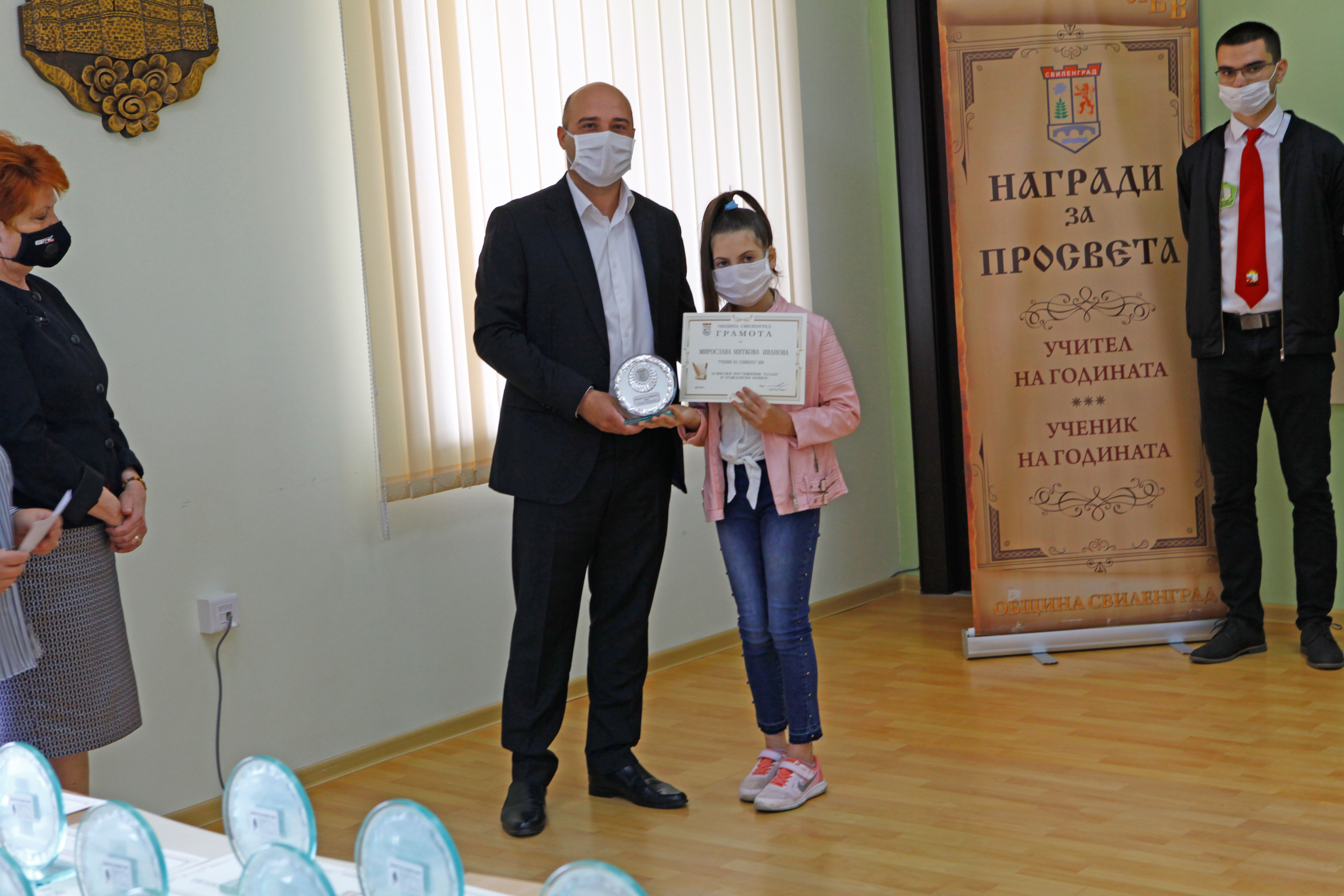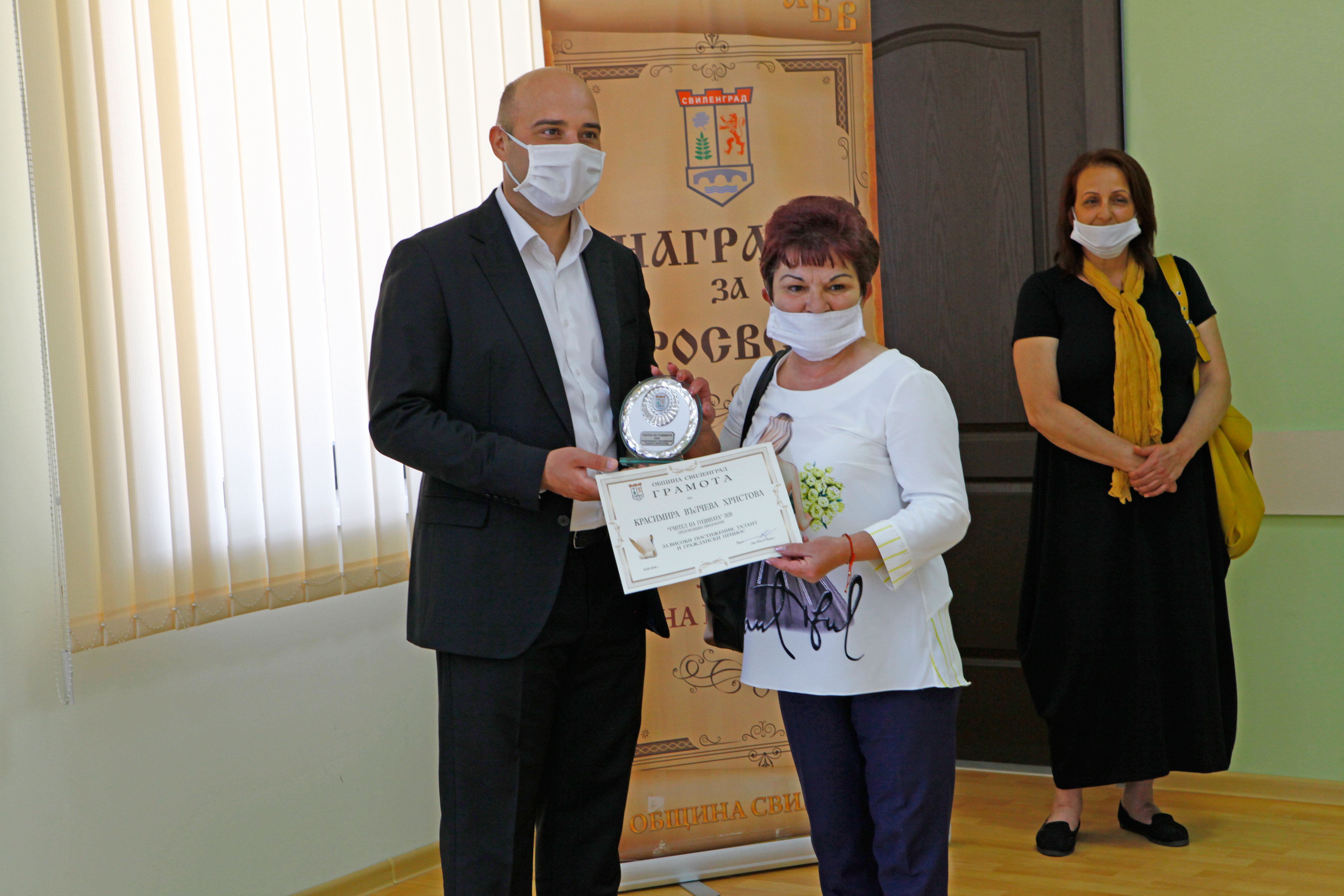 Днес, на скромна церемония, в малката заседателна зала на ОбА-Свиленград бяха връчени традиционните награди „Ученик на годината“ и „Учител на годината“. Връчването, по традиция, бе в навечерието на 24 май – Ден на българската просвета и култура и на славянската писменост. То се състоя при стриктно спазване на мерките срещу разпространението на коронавирус. Кметът на община Свиленград арх. Анастас Карчев и неговият заместник г-жа Мария Костадинова приеха номинираните от педагогическите съвети на учебните заведения по групи. Първи бяха учениците: Стефани Костадинова Караначева – СУ „Д-р Петър Берон“, Нейко Христов Нейков – ПГССИ „Христо Ботев“, Дениз Юлиянов Илиев – Първо ОУ „Иван Вазов“, Зина Михайлова Кирилова – ОУ „Любен Каравелов“, Мирослава Миткова Иванова – ОУ „Христо Ботев“, с. Левка, Стефка Ангелова Михайлова – НУ „Христо Попмарков“ и Дилян Динев Делчев – ЦСОП „Стефан Василев“. Всички те получиха красиви плакети, грамоти и парична награда.