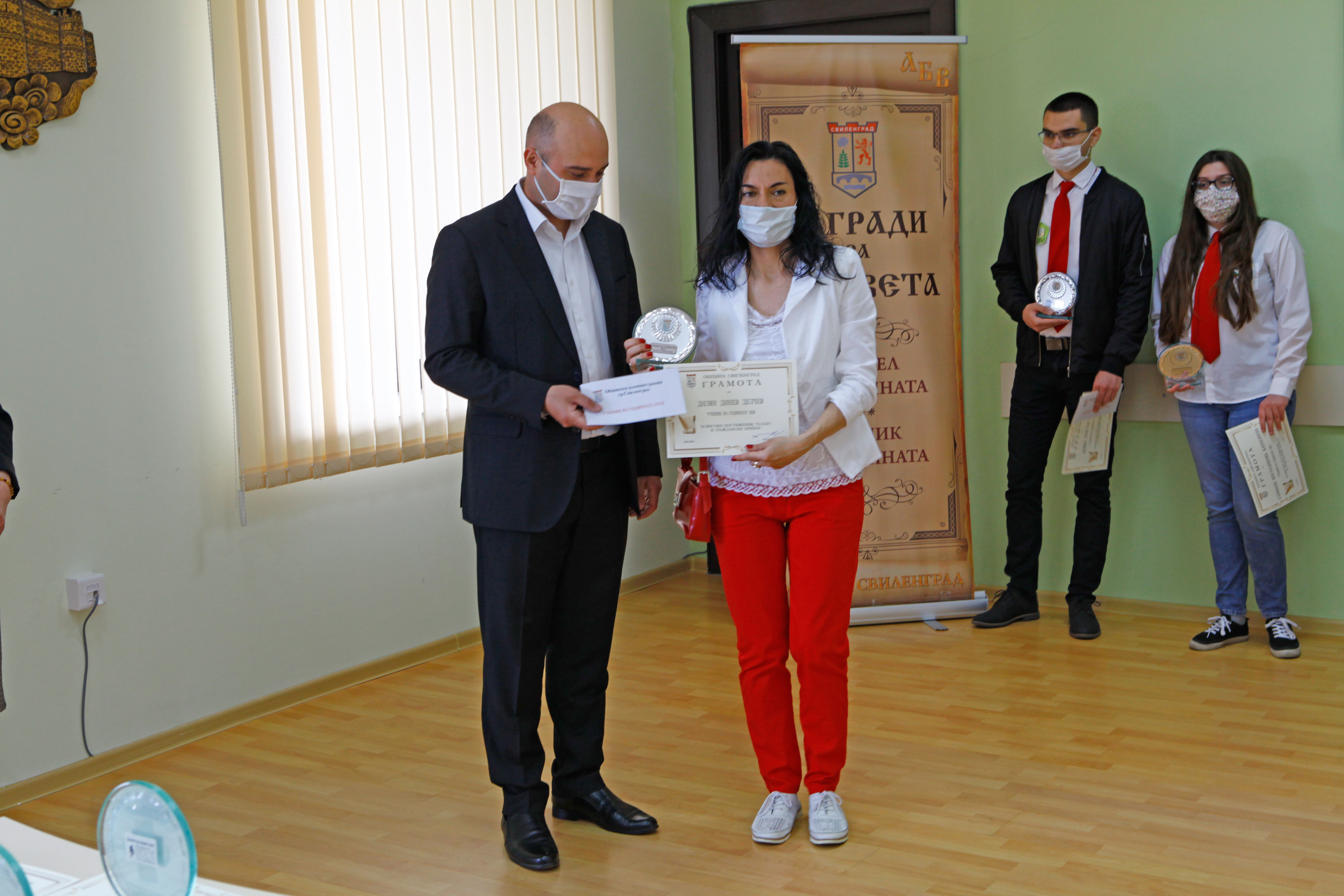 Тази година общината не присъди индивидуални награди. След връчването им отличените се представиха накратко и споделиха впечатленията си от дистанционното обучение.