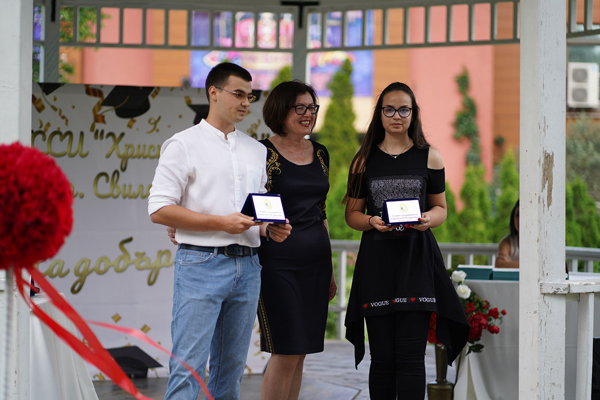 Наградата „Спортист на випуска“ закономерно отиде при Димитър Петров, а Милена Димитрова и Александър Чанков се окичиха със „За принос в утвърждаването на авторитета на професионалната ни гимназия“.