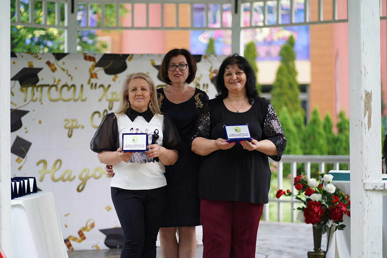 Наградата „За принос в развитието на професионалната гимназия“ бе присъдена на старши учителите Татяна Иванова и Любка Дичева, а колегите им Алексия Лилянова и Емилия Желязкова взеха приза „Учители-иноватори“. Младият преподавател Любомир Апостолов заслужи „За успешен старт в кариерата“.