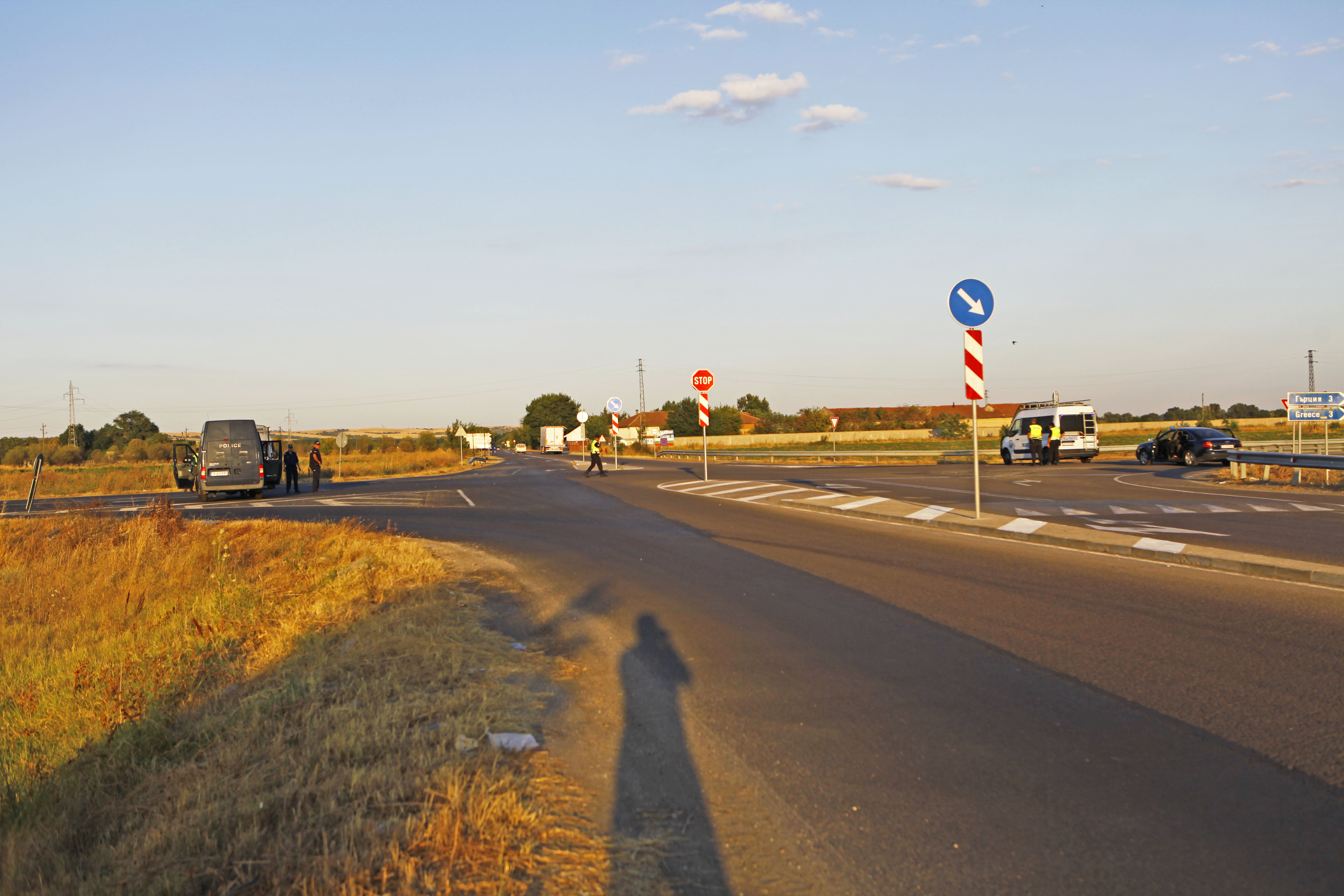 Платното за Гръцкото на кръстовището преди Гарата е блокирано от автомобили на жандармерията.