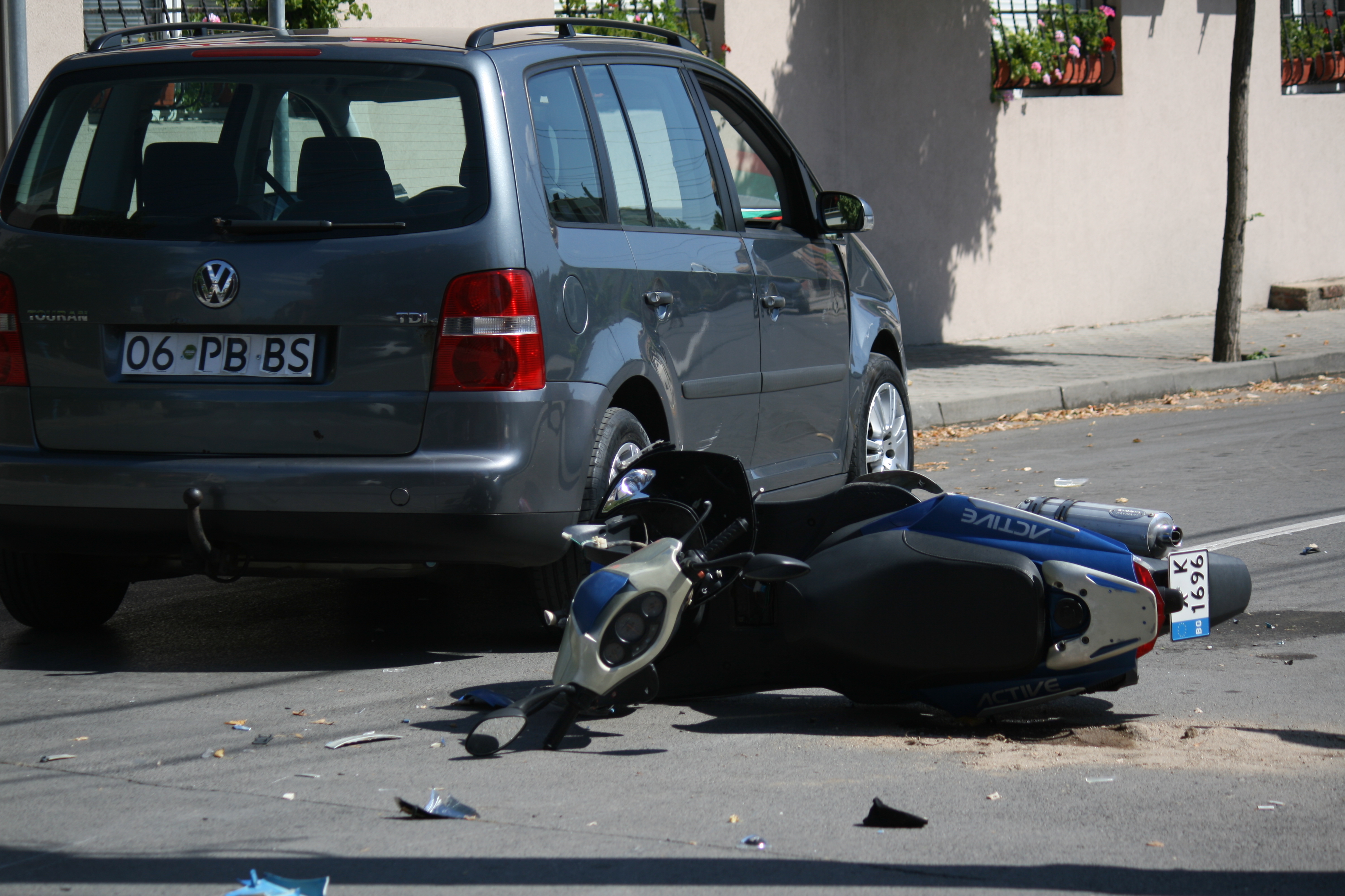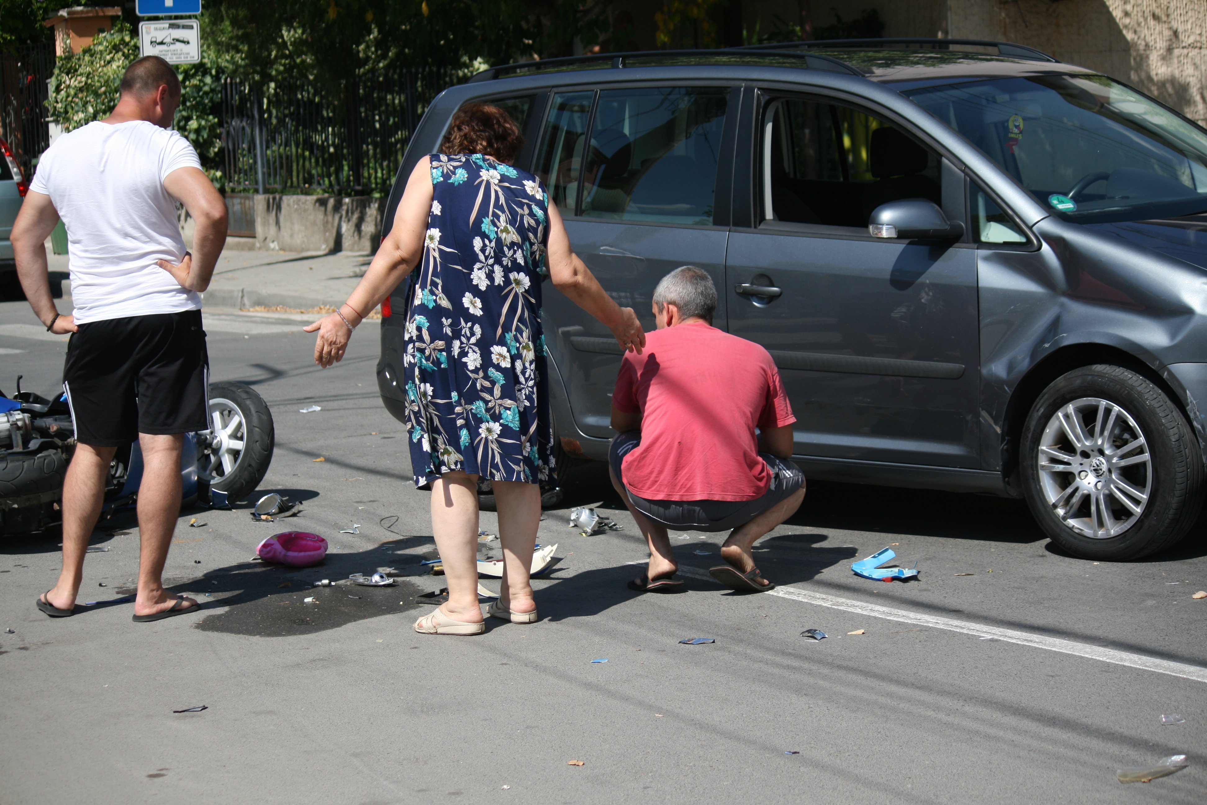 „Фолксваген“ и мотор са се ударили. Мотористът е откаран в болницата, а шофьорът на колата каза, че не е разбрал откъде е изскочил мотористът.