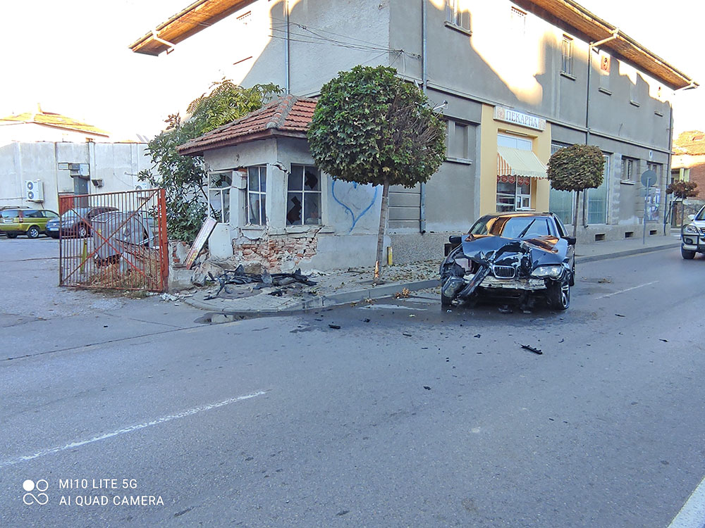 По разказа на очевидци, БМВ-то се е забило с висока скорост в порталната къщичка на паркинга зад кино „Тракия“ и се е завъртяло в посока професионалната гимназия, откъдето е дошло. Шофьорът излязъл невредим от колата.