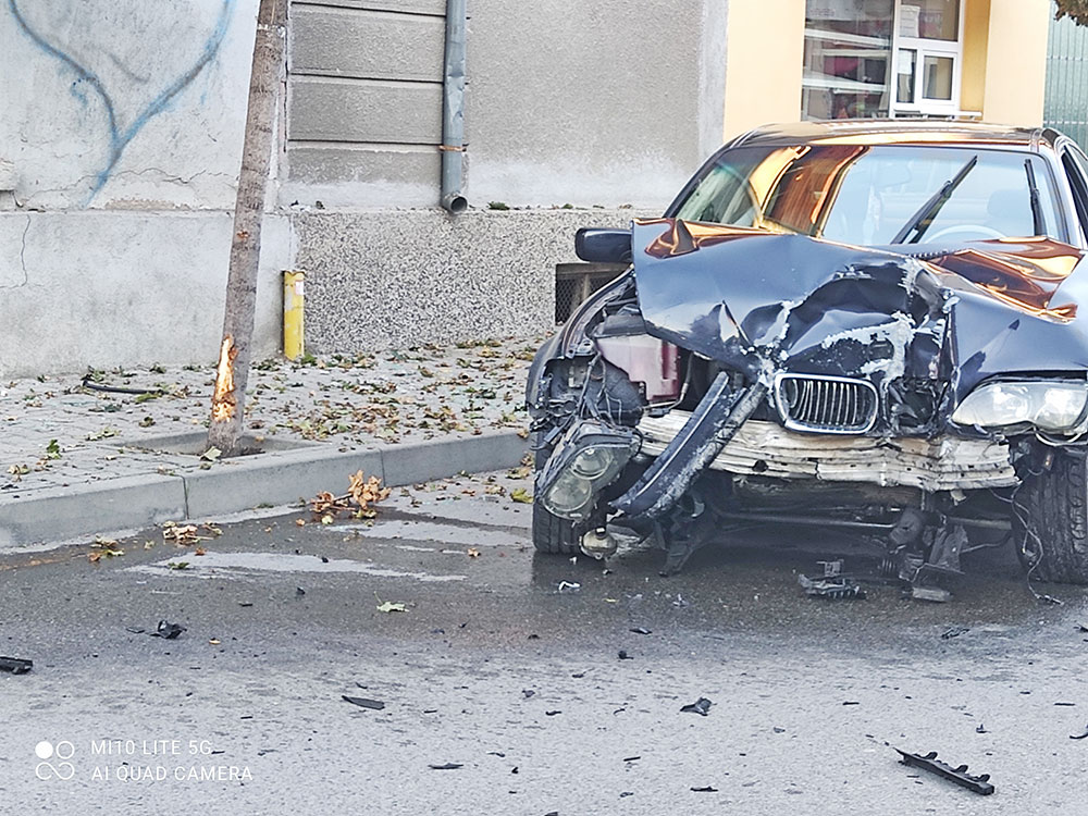 Мощно БМВ, с разградска регистрация, катастрофира преди малко на ул. „Александър Стаболийски“. Инцидентът се случи срещу р-т „Лозата“. Шофьорът, младеж от „разградските“, не е пострадал, защото предпазните системи на „бавареца“ са действали безотказно.
