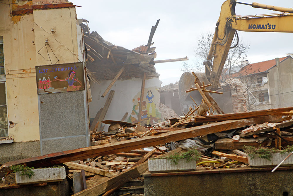 Старата сграда на свиленградската детска градина „Снежанка“ от днес е в историята. Тя бе съборена, а от четвъртък-петък ще започне извозването на строителните отпадъци, за да се очисти теренът за изкопните дейности. Ще последва полагането на основите на новата модерна сграда на детската градина.