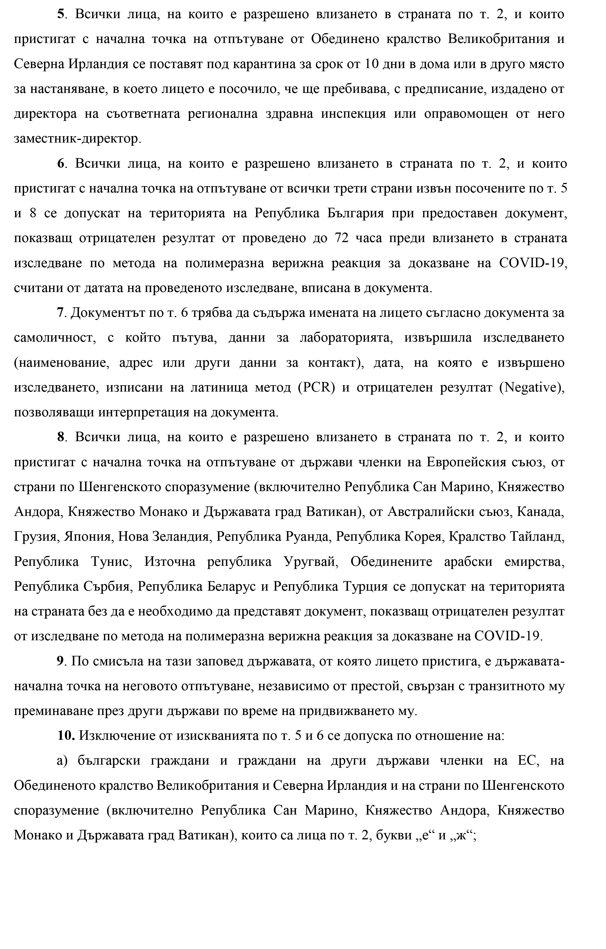 Със своя Заповед № РД-01-719/20.12.2020 г. министърът на здравеопазването проф. Костадин Ангелов налага задължителна 10-дневна карантина на всички лица, в това число и български граждани, пристигащи от Обединено кралство Великобритания и Северна Ирландия.