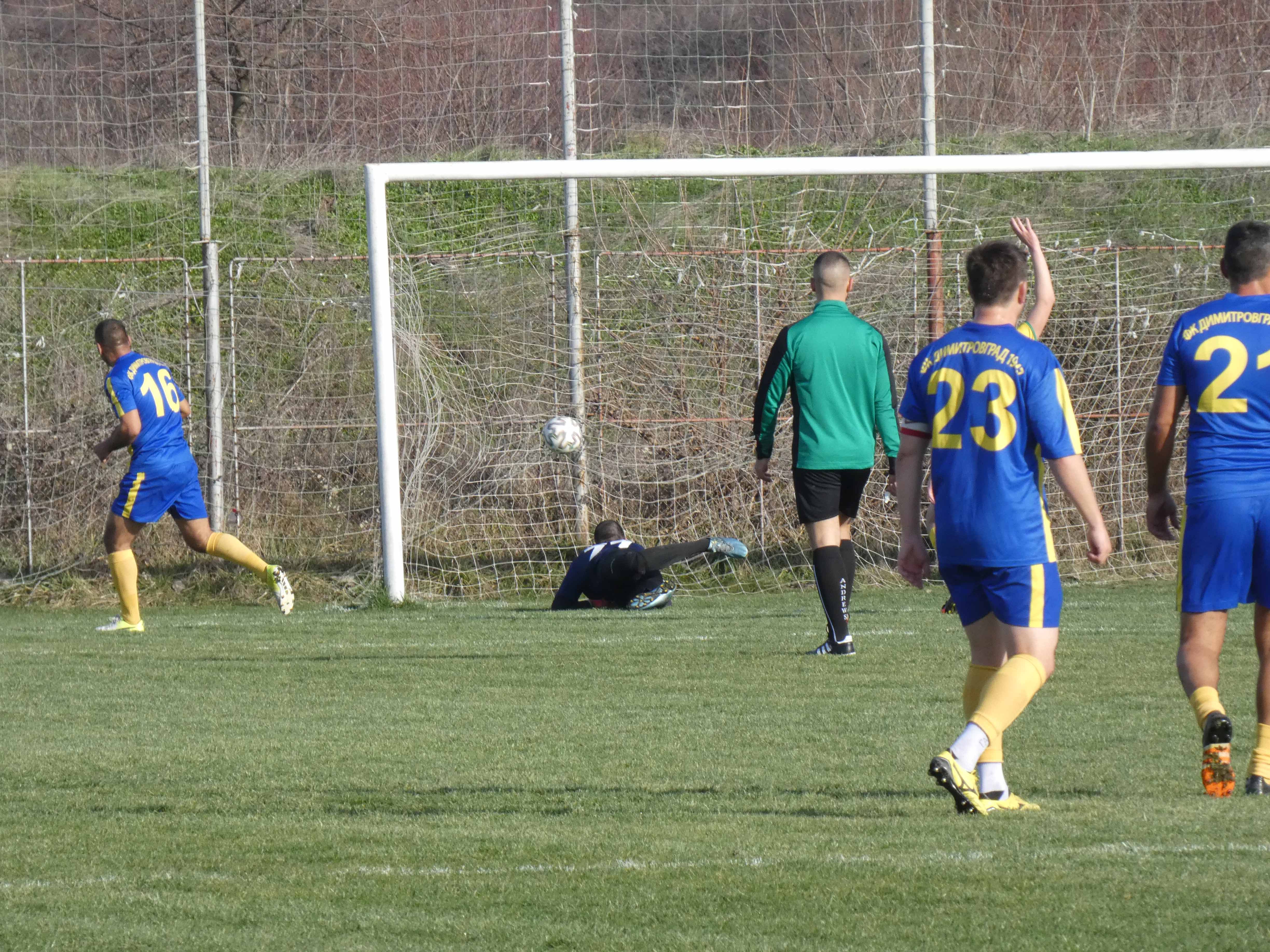 През първата част Димитровград поведе с 2:0, но „южняците“ успяха да върнат един гол.