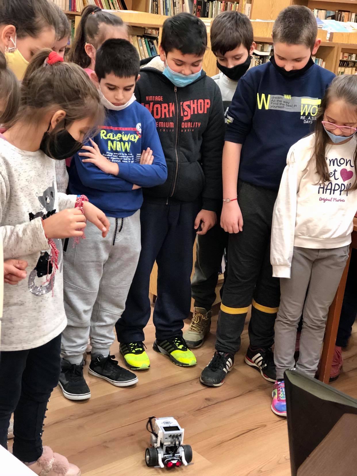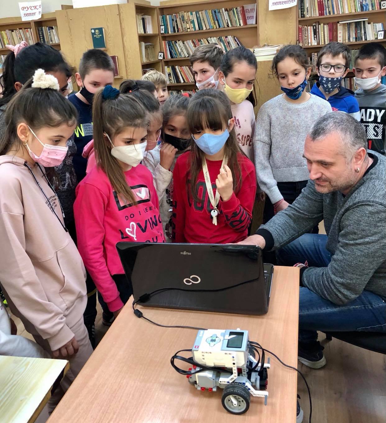 Учениците вече се учат да програмират и използват закупеният робот LEGO, който управляват с програмата по компютърно моделиране Scratch.