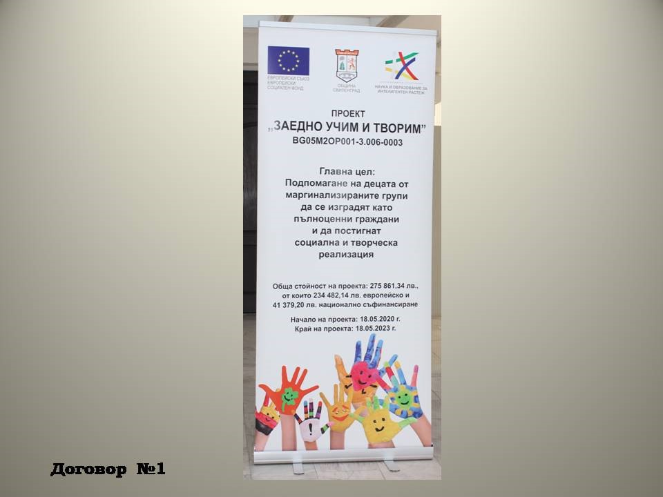за сключени и изпълнени договори за обезпечаване на дейностите по проект „Заедно учим и творим“, Административен договор за предоставяне на безвъзмездна финансова помощ № BG05M2OP001-3.006-0003