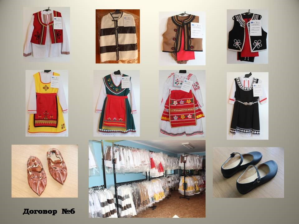 - За групата по танци по Д8 с ръководител Людмила Спатару – костюми за четири танца – 92 бр., танцови джаз обувки-23 бр. и изкуствени плитки – 23 бр.
