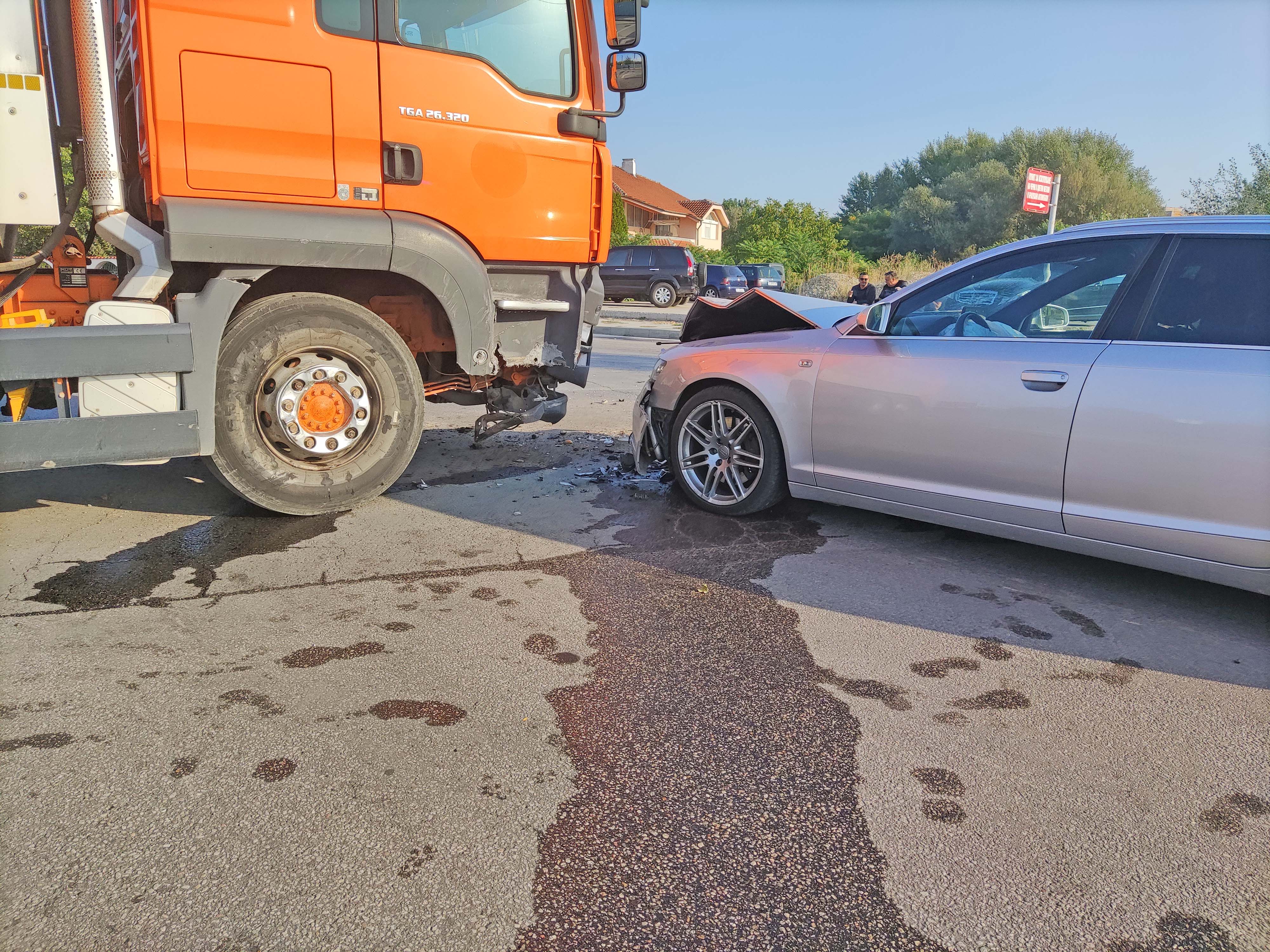 „Ауди“ се натресе в сметосъбирачка на околовръстното в Свиленград. Инцидентът стана преди малко на кръстовището за Левка и Димитровче.
