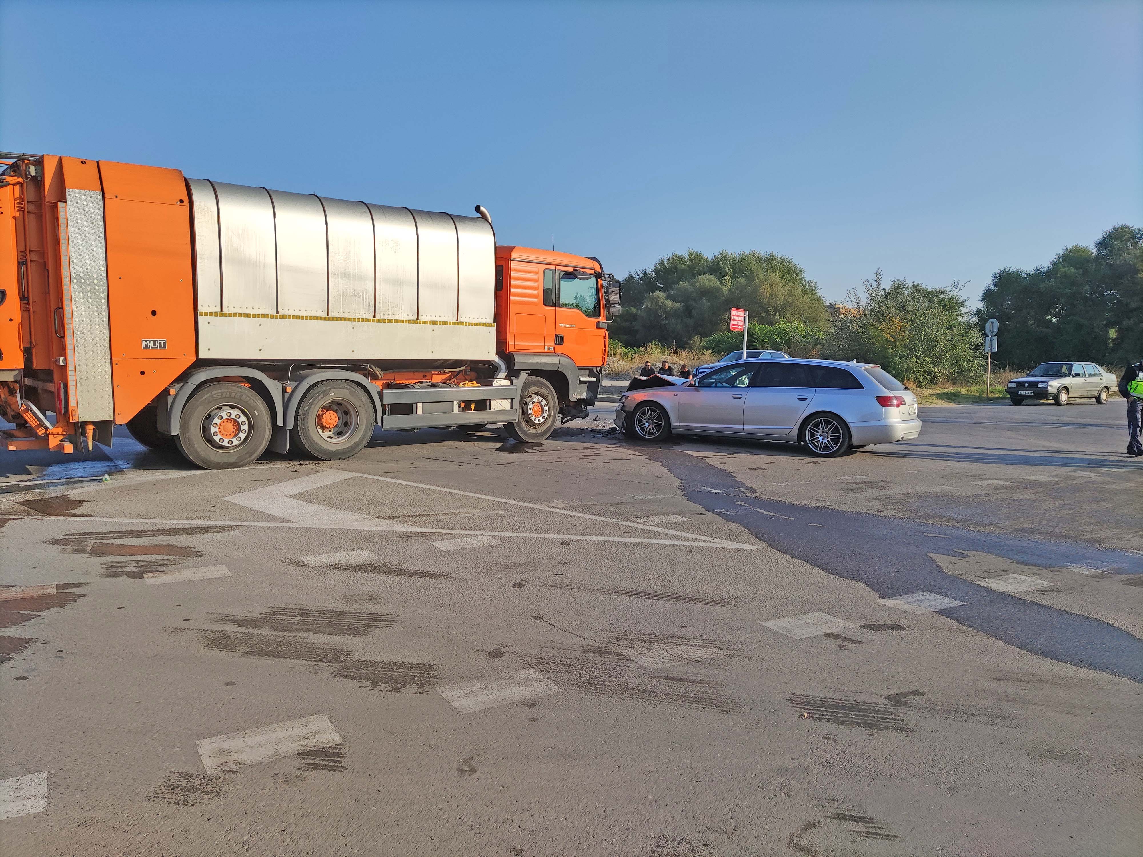 За щастие в жестокия удар няма пострадали хора, но сметосъбирачката излиза от строя. Тя е със скъсан преден мост.