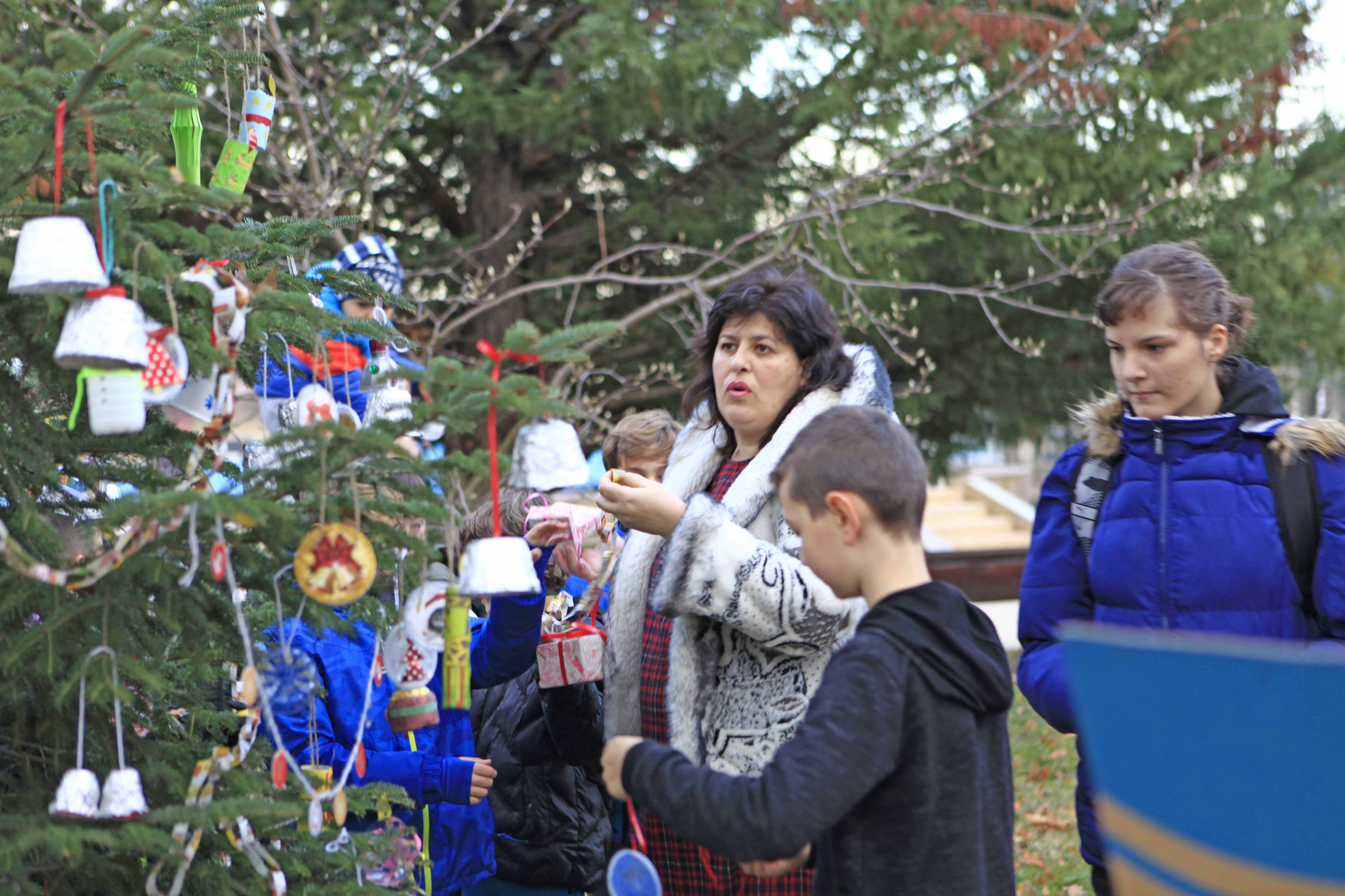 В украсяването на елхата се включиха и родители на малчуганите.