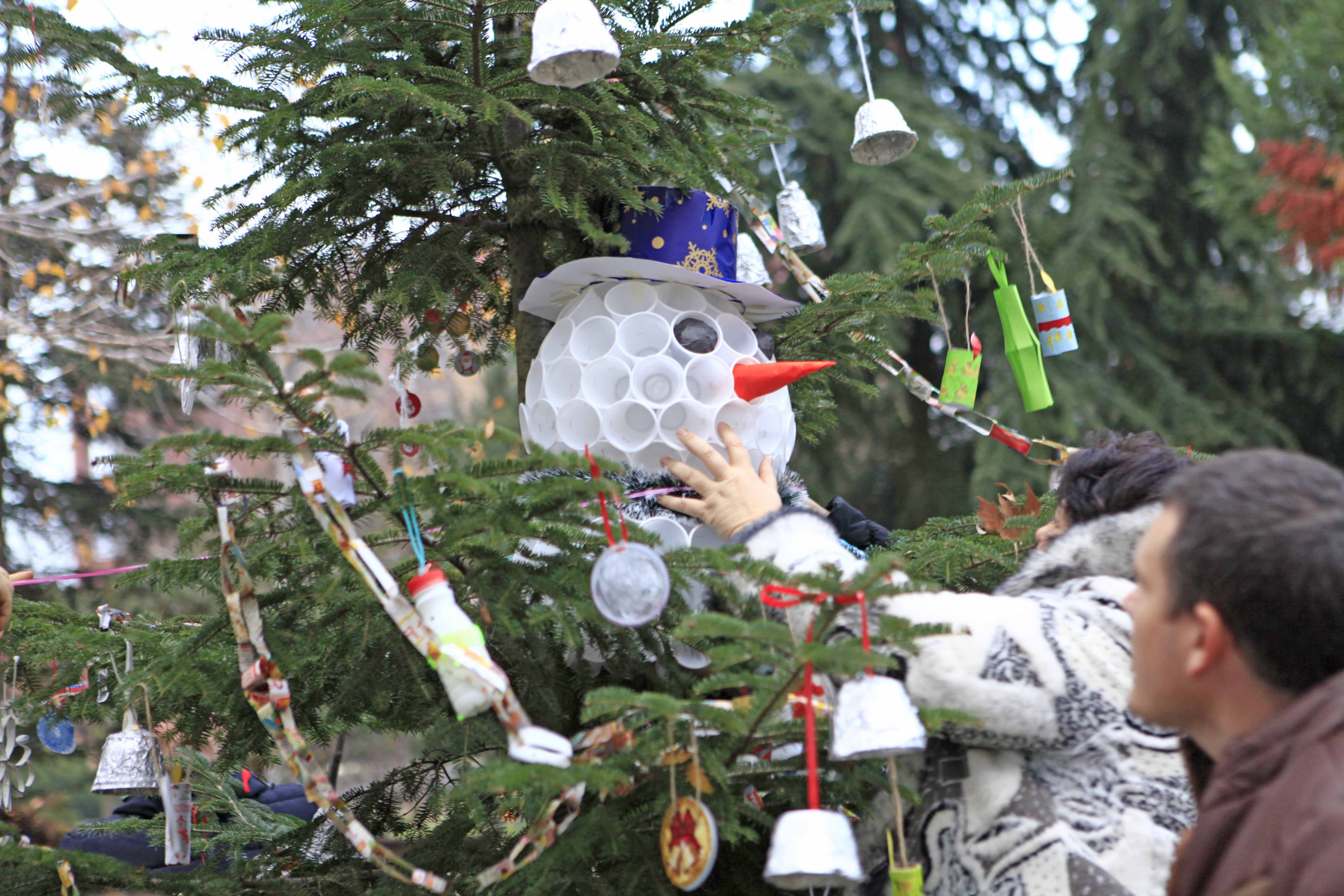 Четвъртокласници от Първо основно училище „Иван Вазов“ – Свиленград украсиха елха в градския парк по нестандартен начин. В продължение на дни са изработвали гирлянди, украшения и играчки от …отпадъчни материали – пластмасови и хартиени чашки, кенчета от сокове, хартия и подобни.