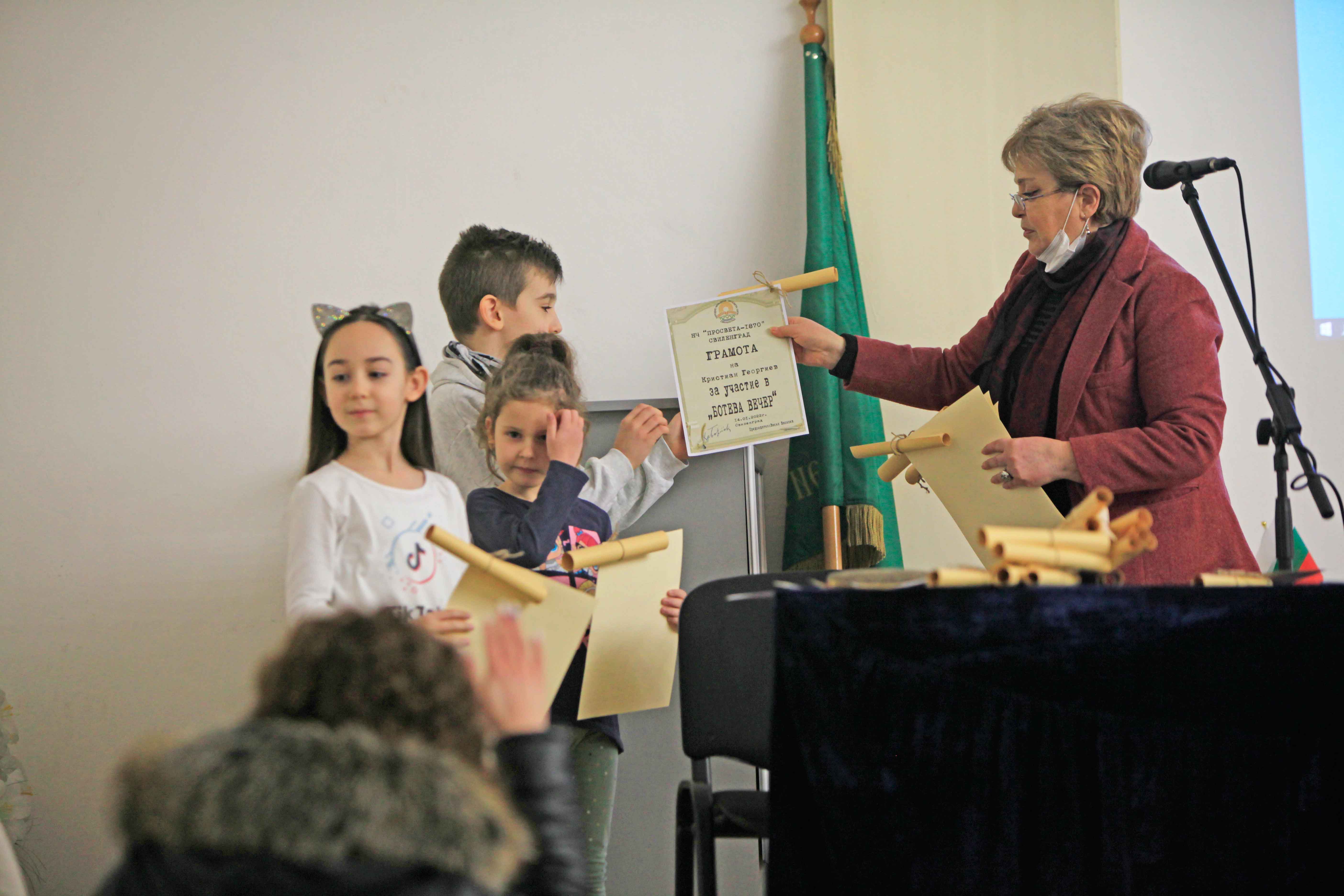 Организаторите от народно читалище „Просвета – 1870“ се бяха погрижили всички деца да получат грамоти за участието си в творческата вечер.