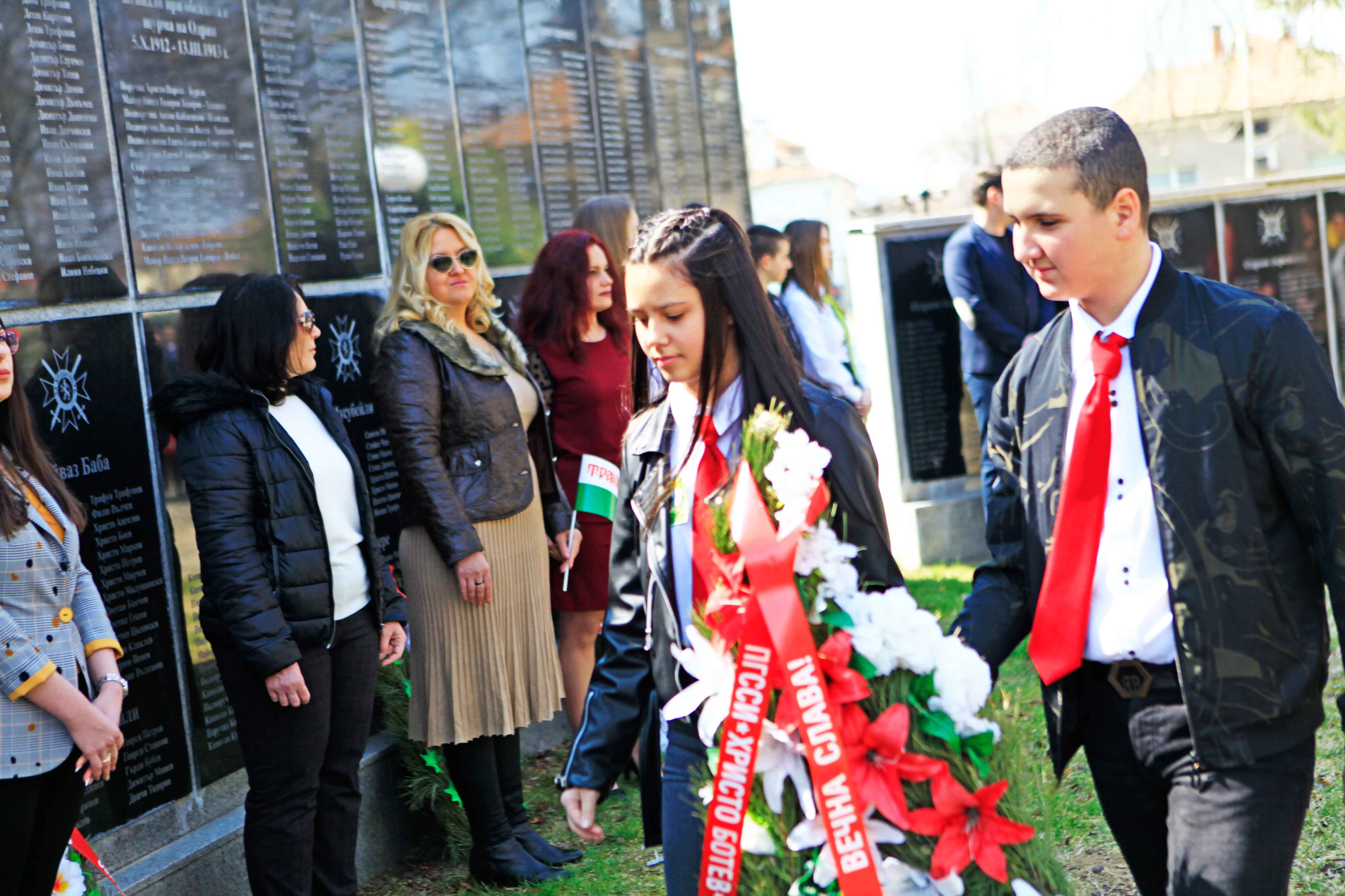 Цветя и венци пред паметника поднесоха представителите на дружество „Тракия“, общинска администрация, ПП ГЕРБ, училища, детски градини, граждани.
