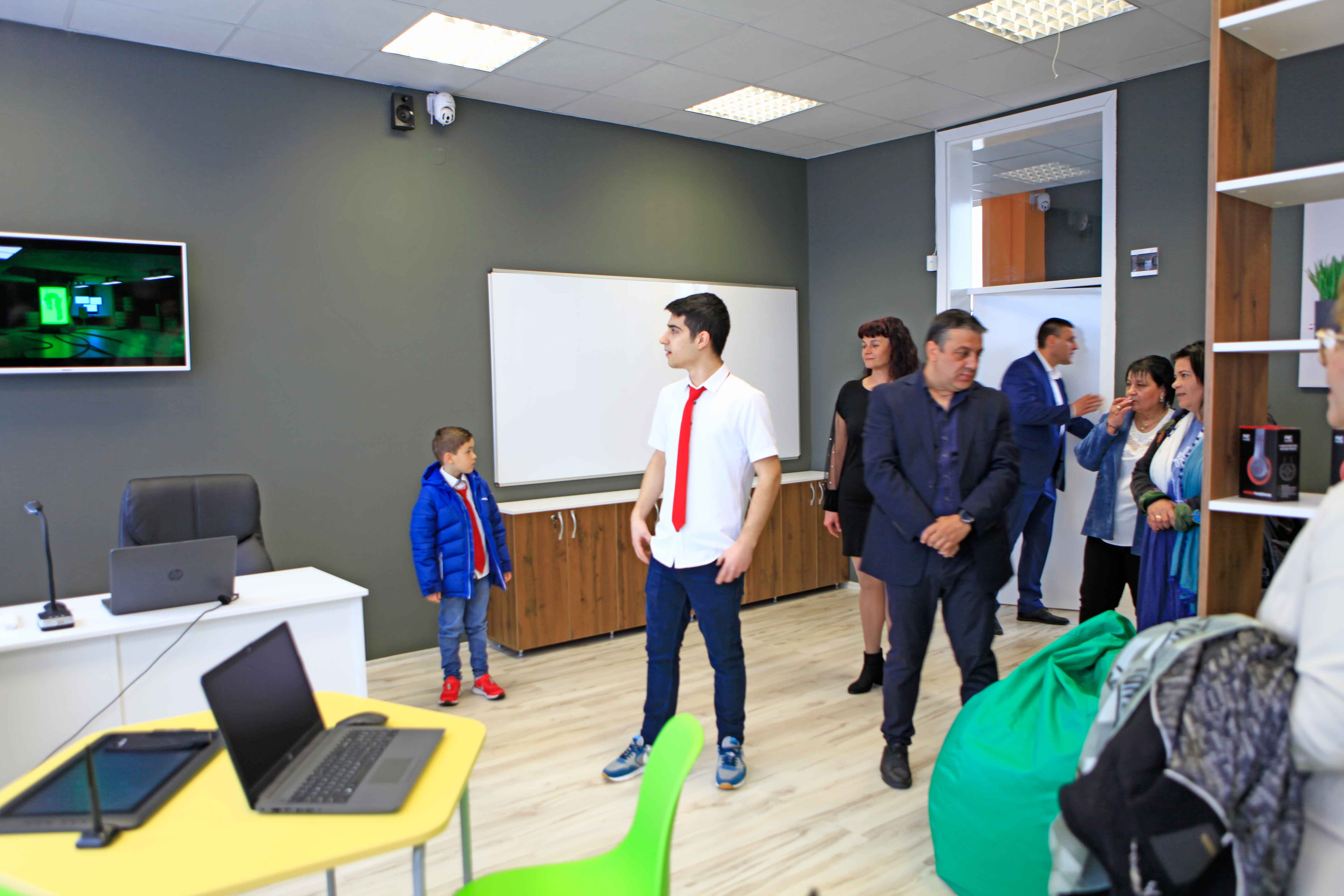 В словото си г-н Боянов акцентира на това, че технологиите в центъра са разработени от преподаватели и ученици от училището, като не пропусна да им благодари.