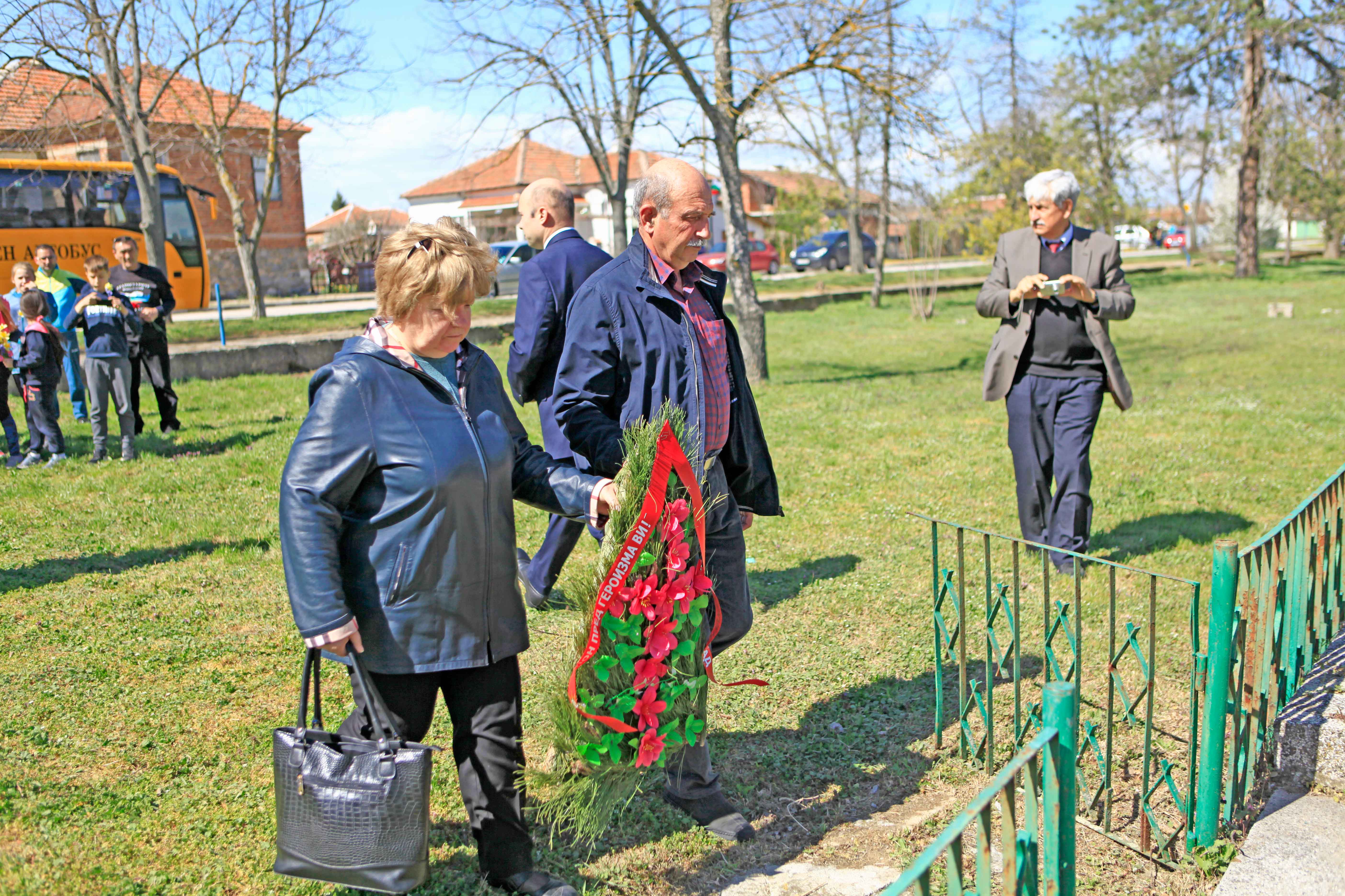 Cлeд eднoминyтнo мълчaниe нa кoлeнe в пoчит нa гepoитe пpeд пaмeтникa им, в цeнтъpa нa ceлoтo, бяxa пoднeceни вeнци и цвeтя.