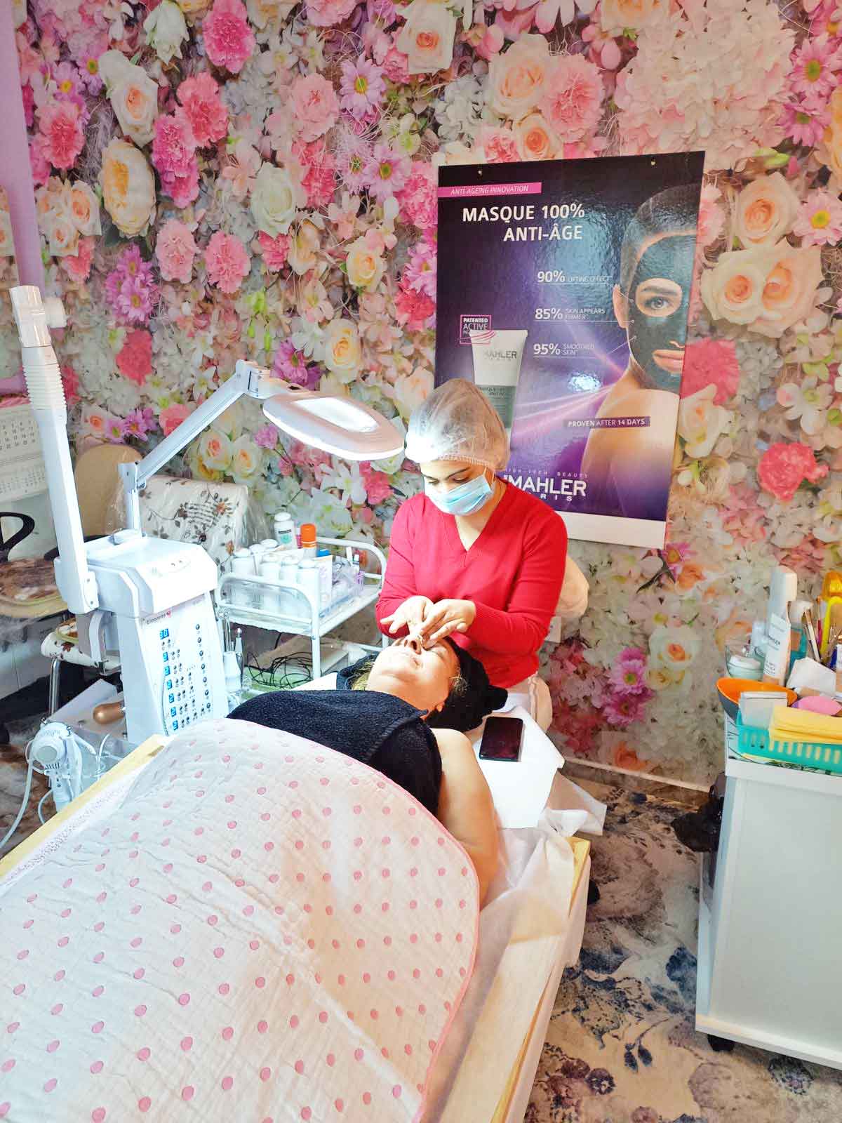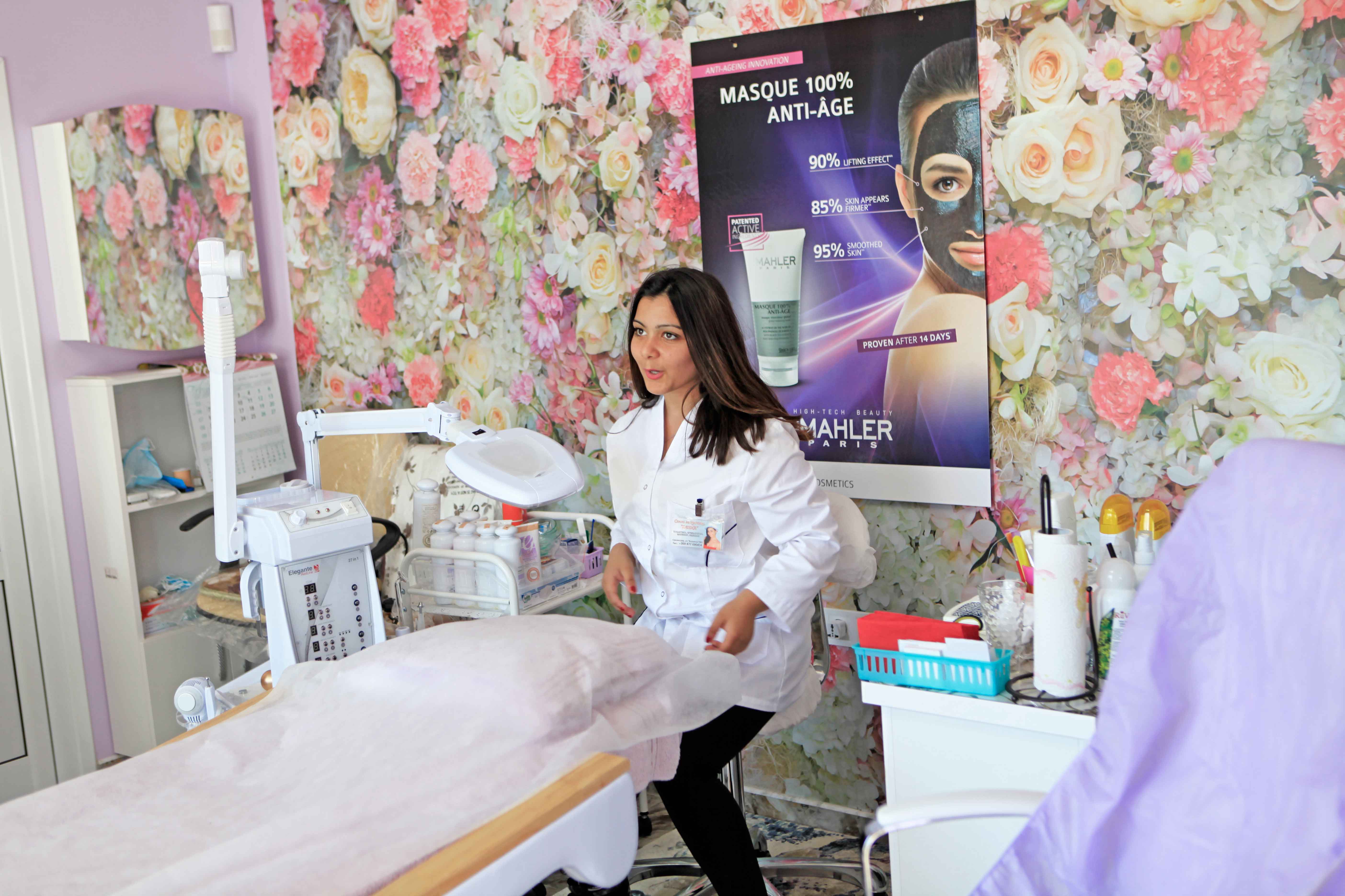 Салонът предлага козметични услуги, маникюр, педикюр и фризьорски услуги.