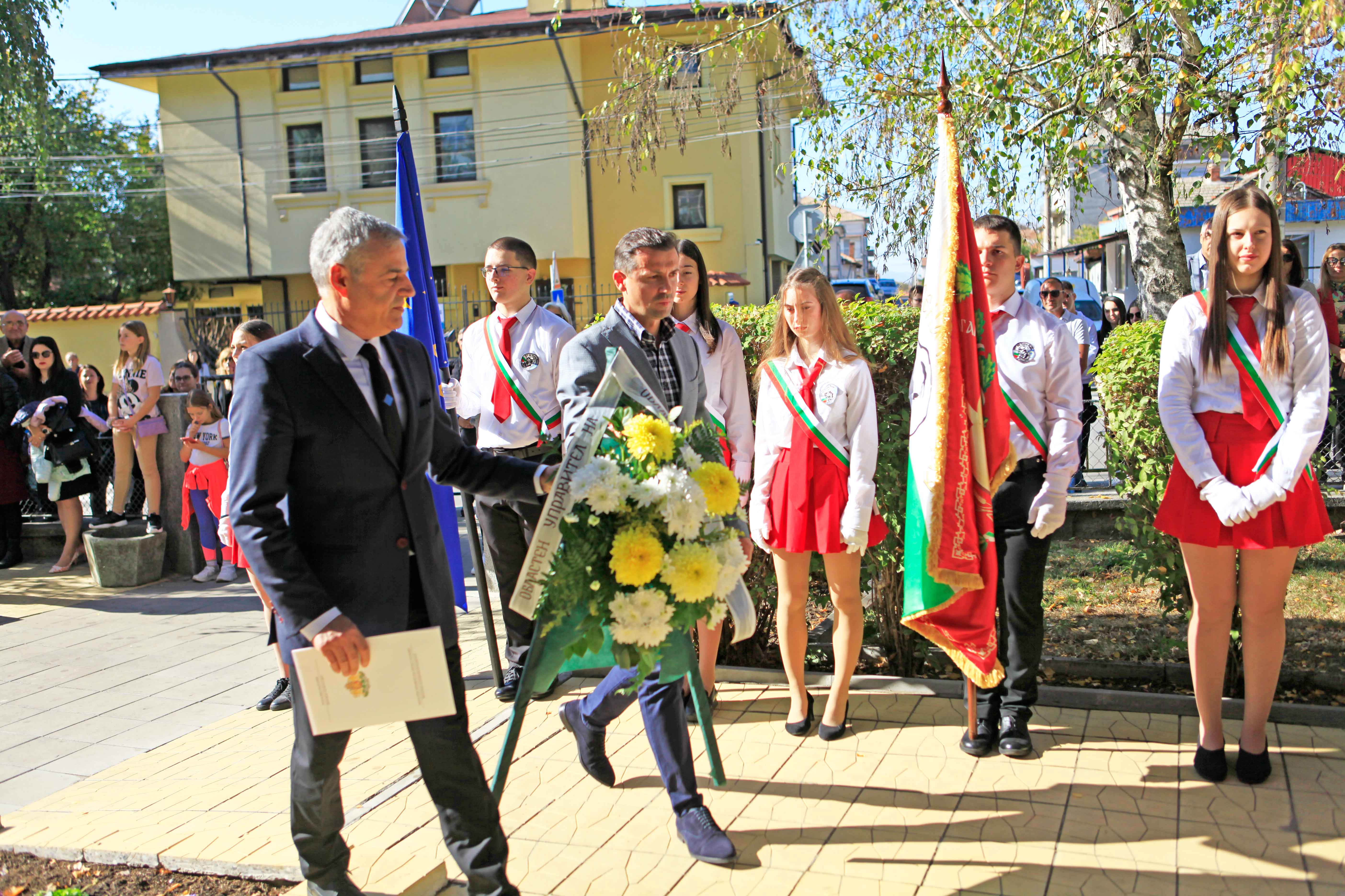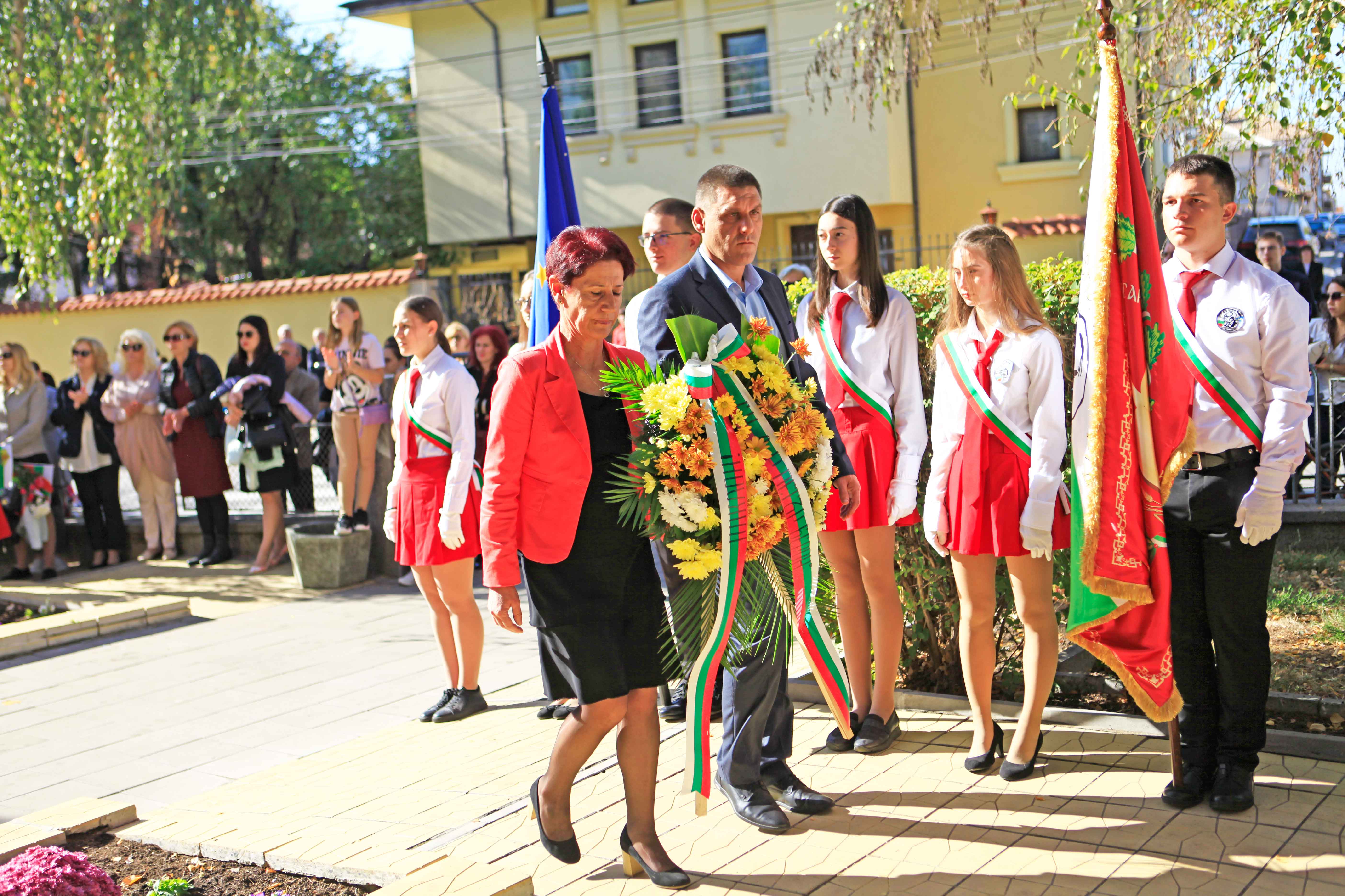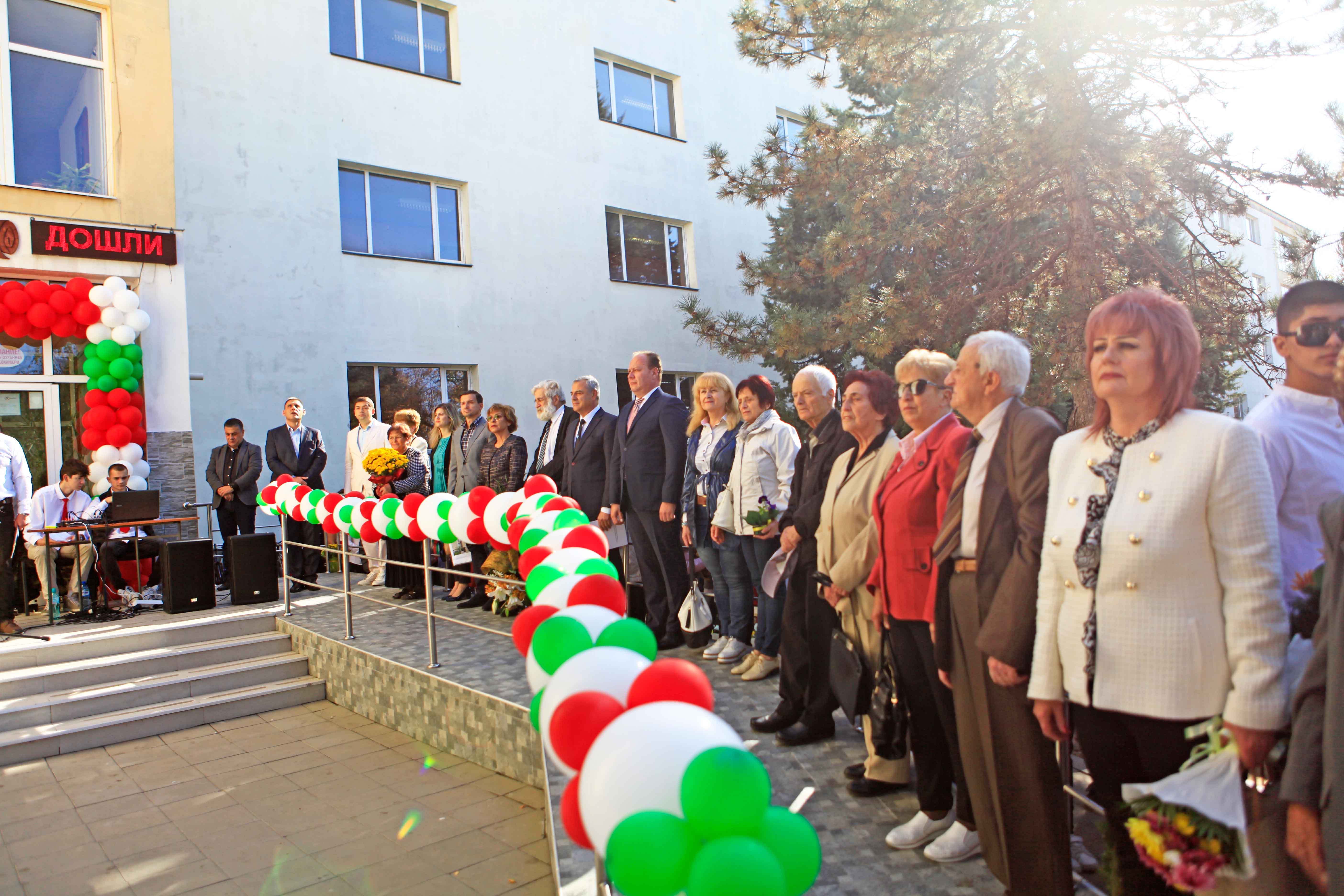 Приветствия произнесоха директорът на училището Мариян Боянов, Милен Врабевски, председател на фондация „Българска памет“, Минко Ангелов, областен управител и проф. Петър Берон, потомък на училищния патрон.