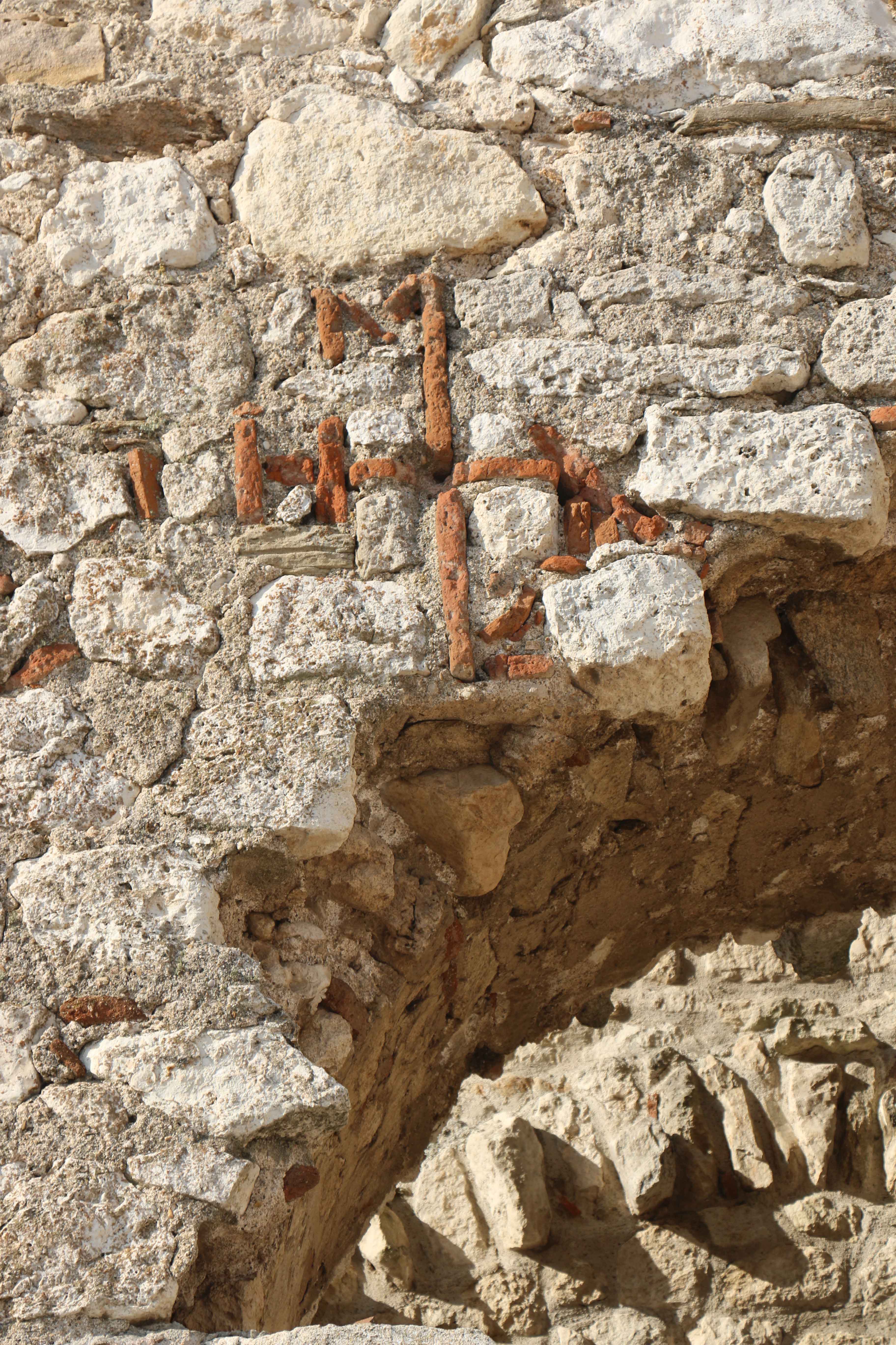 Кръстовидният монограм отдясно на входа.
