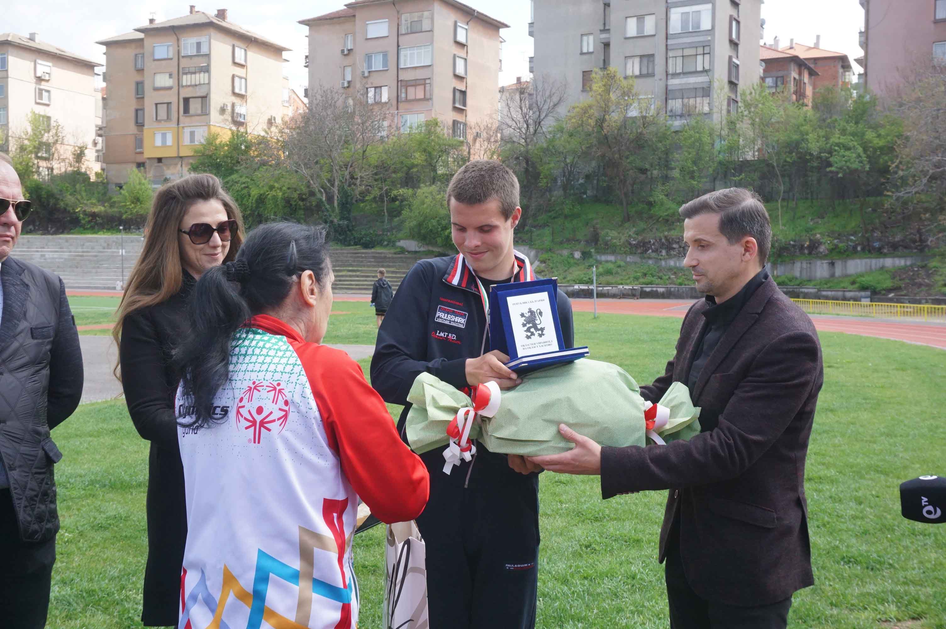 Заместник-областният управител на област Хасково Мартин Узунов връчи плакет на областния управител на област Хасково на Стелиян Гюзелев, който е един от четиримата атлети от отбора по лека атлетика, представящи България на Световните летни игри на Спешъл Олимпикс в Берлин през юни. Събитието, организирано със съдействието на Областна администрация-Хасково, се състоя на стадион „Младост“ в Хасково.