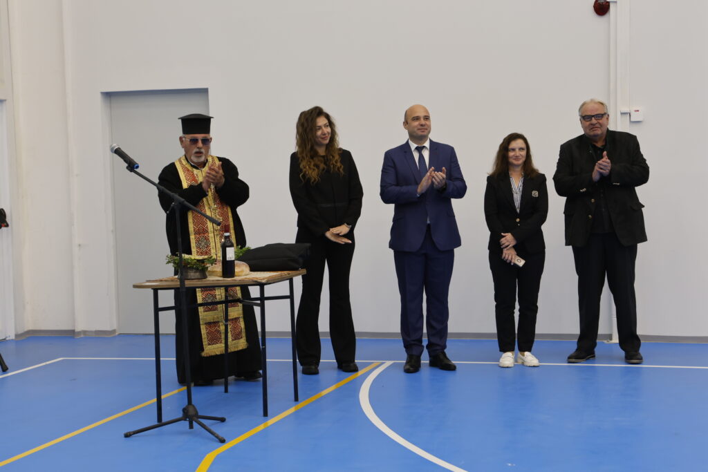 Той благодари на всички служители на ОбА, работили по реализирането на спортната зала. Не пропусна да благодари и посочи като пример г-жа Ива Георгиева, възпитаничка на училището, която е дарила всички средства необходими за оборудването на залата със спортни уреди.