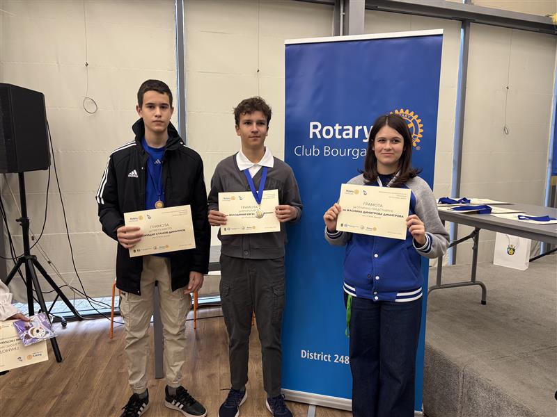 Осмокласникът Божидар Стамов от Свиленград се класира трети в Ротариански математически празници, Бургас.