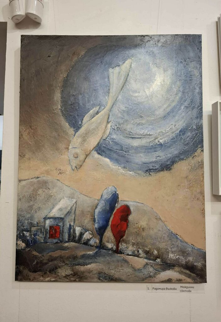 Община Бургас и Дружеството на бургаските художници представиха вчера празнична изложба по случай Никулден. В нея участват над 70 автори с произведения живопис, графика и пластика. Сред тях е свиленградската художничка Радомира Вълкова, която се представи с „Междинни светове“ – маслени бои/платно 80/60, създадена специално за изложбата. Творбите, допуснати за участие в експозицията, са селектирани от авторитетно жури.