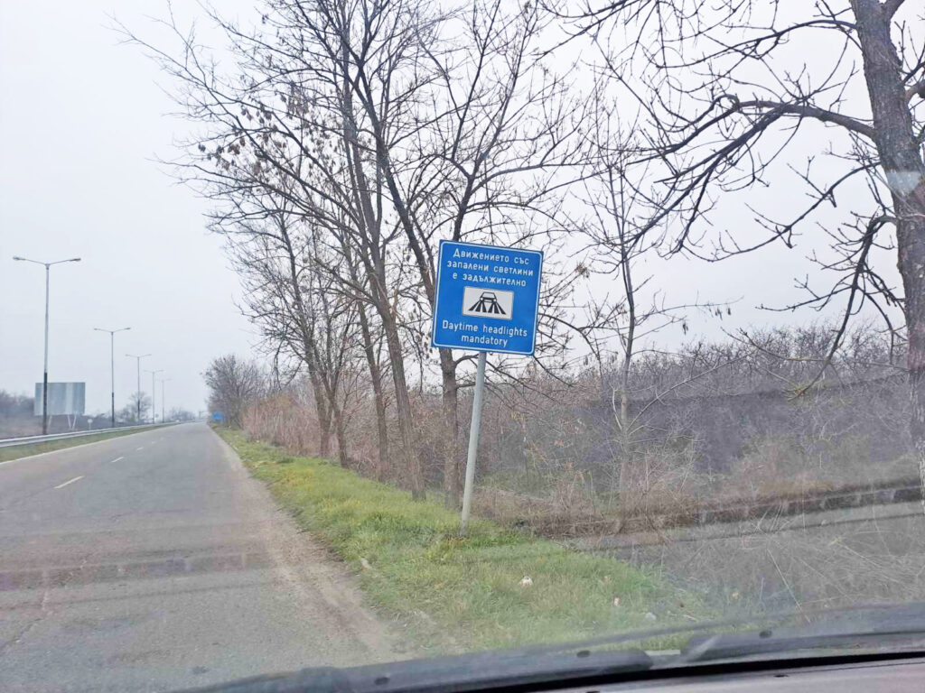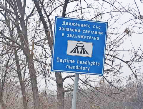 За странна информационна табела алармира свиленградчанин, връщащ се от Гърция, където празнувал Коледа. Една от първите табели на българска територия предупреждава, че движението на автомобили е задължително със „запалени“ светлини.
