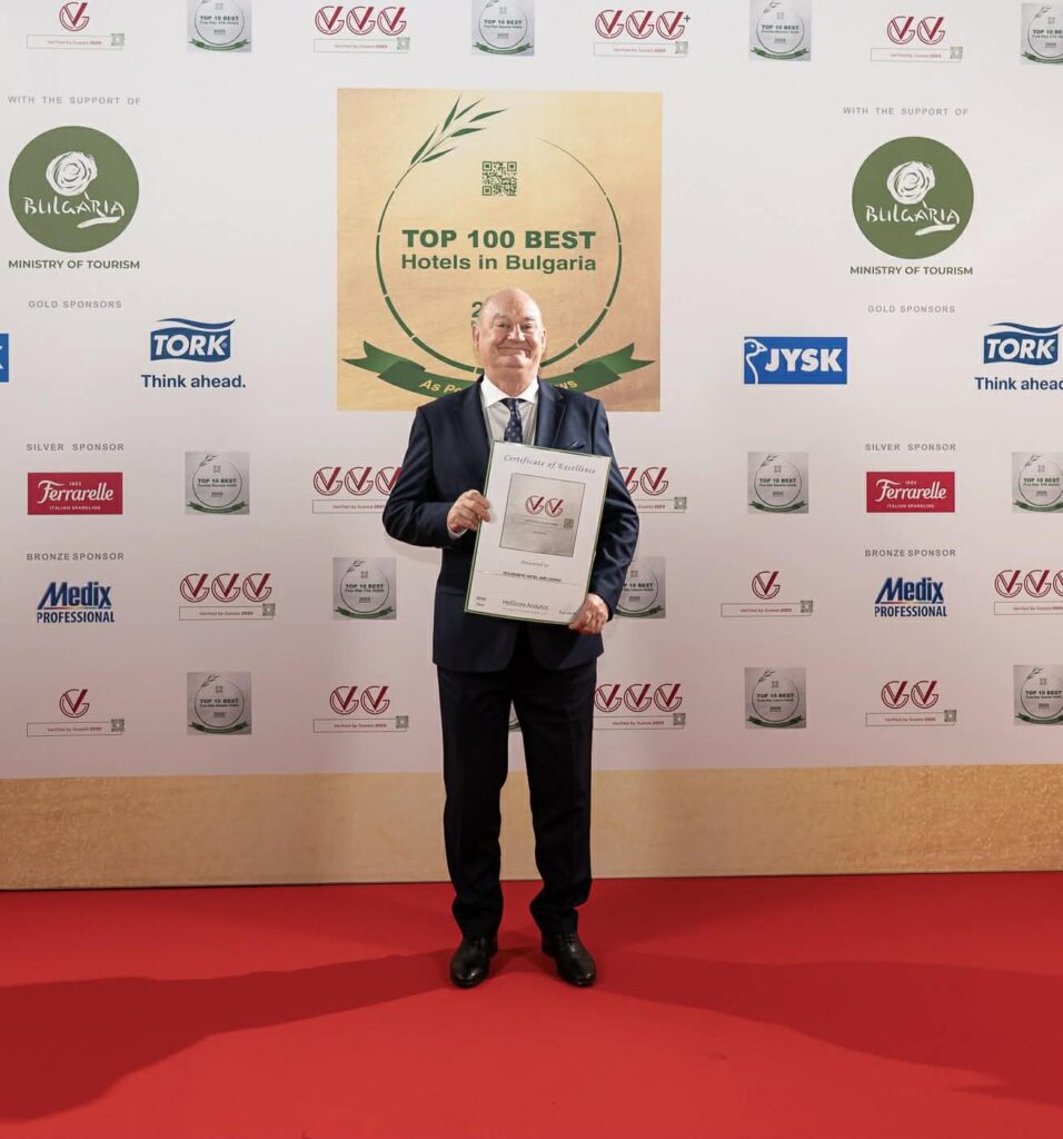 Отличието бе прието от Генералния Мениджър Ангъс Нобъл по време на гала церемонията по награждаването на най-добрите хотели в България според оценките на техните гости, която се състоя снощи в Иновационния център „Джон Атанасов“ в София Тех Парк.