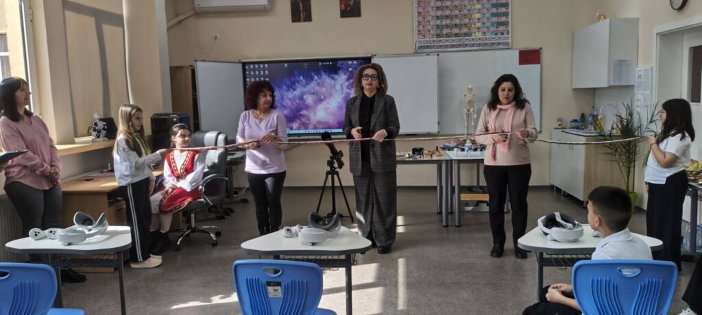 Кабинетите разполагат с очила за виртуална реалност, чрез които учениците могат да „пътуват“ в Космоса или да изследват човешкото тяло отвътре. Тази технология прави уроците по природни науки по-достъпни, нагледни и запомнящи се. Обучението се обогатява и чрез платформата Corinth, която представя учебното съдържание чрез триизмерни модели и интерактивни визуализации по биология, физика и химия.