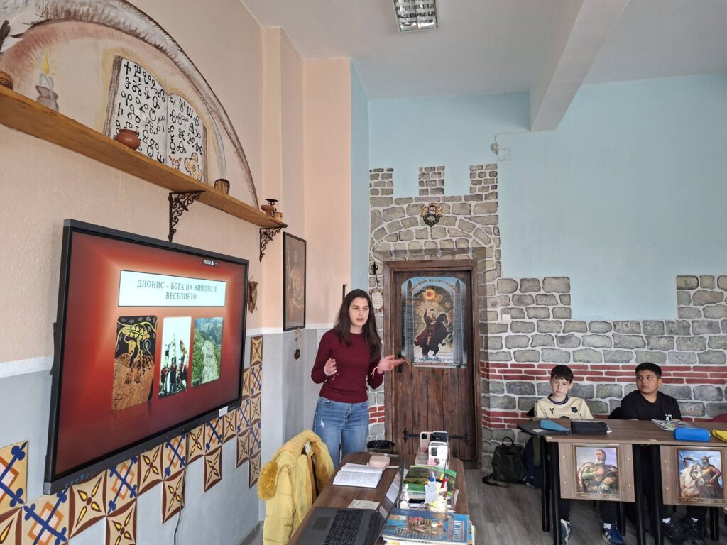 Пред будните за нови знания ученици от V Б и V В клас с учител по история Христинка Парушева музейният педагог Росица Георгиева представи религиозните вярвания и ритуали на траките. Чрез кратки откъси от тематичен филм тя ги запозна с любопитни факти от живота и духовния свят на траките, и най-вече с одриското племе живяло по нашите земи.